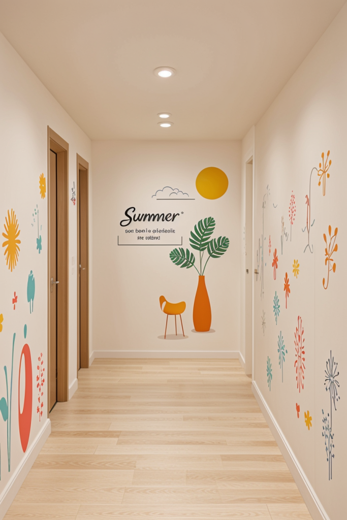 The addition of fashionable wall decals and stickers transforms the design of summer and modern hallway decorations. These stickers have fun shapes or abstract summer patterns that match the color of the room and adds character without being overwhelming. With such effortless affixation, these stickers are ideal for a modern day makeover.