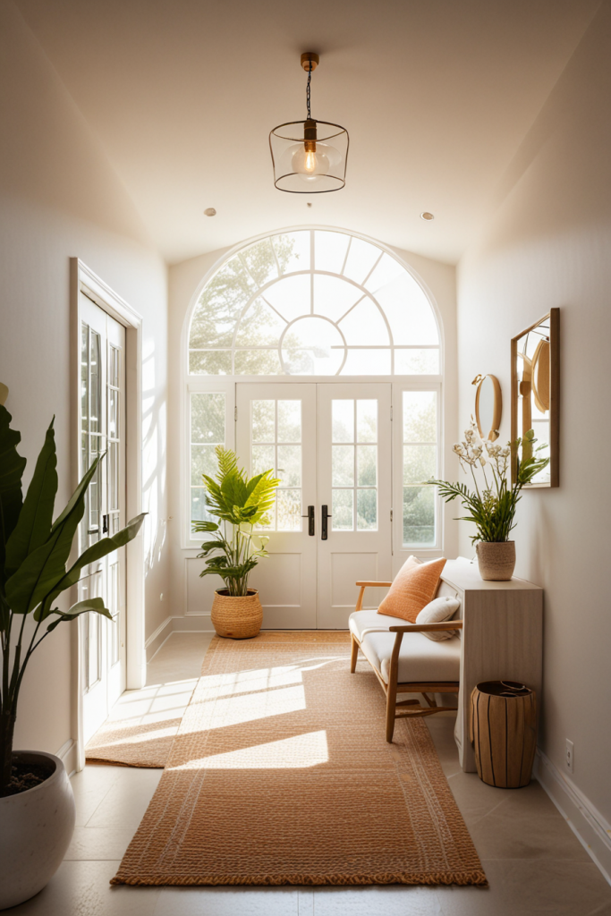 Incorporate decorative mirrors into your hallway to enhance depth perception and light reflection making it appear brighter and more open. Stylish mirrors can be modern framed or artistically designed enhancing the beauty of the space. Not only do they enhance the summer decor with elegance, but they also increase the natural light in the space.