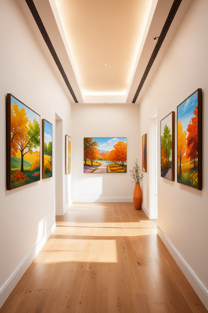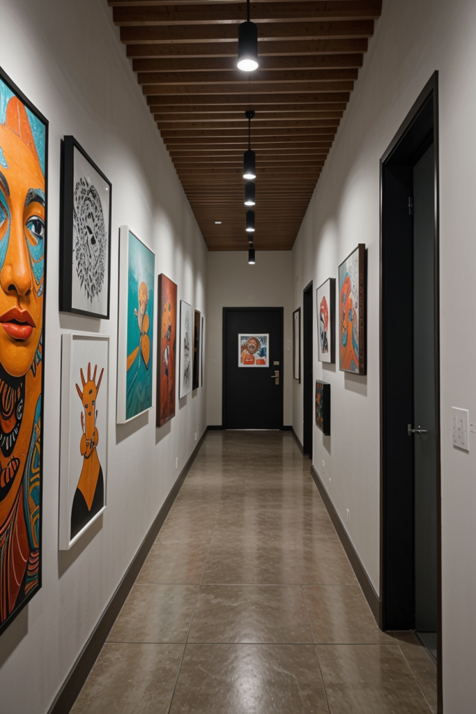 Encourage homegrown skill and add color to your corridor by displaying locally created art that captures the essence of your community. Distinctive pieces of art highlight your culture and modern aesthetics, effortlessly transforming your space into a masterpiece, and making it a welcoming environment. This collection of art pieces adds charm to the entire decor, enhancing the entry gallery to epitomize the local art.