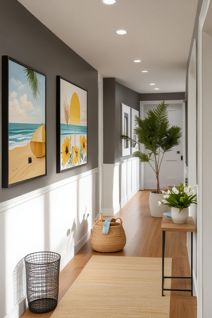 Make the most of your hallway by turning it into an inspiring gallery by putting up seasonal artwork that captures summer. Whether in the form of curated paintings or digital prints, these pieces capture warm landscapes alongside inviting hues to spark conversation and creativity. Each artwork is strategically chosen to supplement the energetic atmosphere and to transform the entryway to a fusion of functionality and artistry.