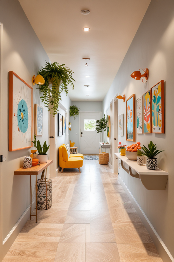 Let your hallway radiate serotonin with elaborate accents that spark conversations. Lively art pieces, playful decor, and even furniture which is bold and stands out can be used to achieve this while still adhering to the overall summer theme. These pieces not only reflect unconventional approach to decor, but also give a personal touch to the entryway.
