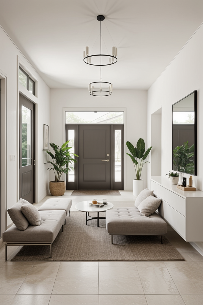 To make a lasting first impression, a fresh entrance is necessary. Make sure your entrance looks beautiful and serves a purpose by using modern decor pieces and sleek furniture which merges style with practicality. The combination of smart storage options and minimalist seating enhances the overall fresh look of the design.