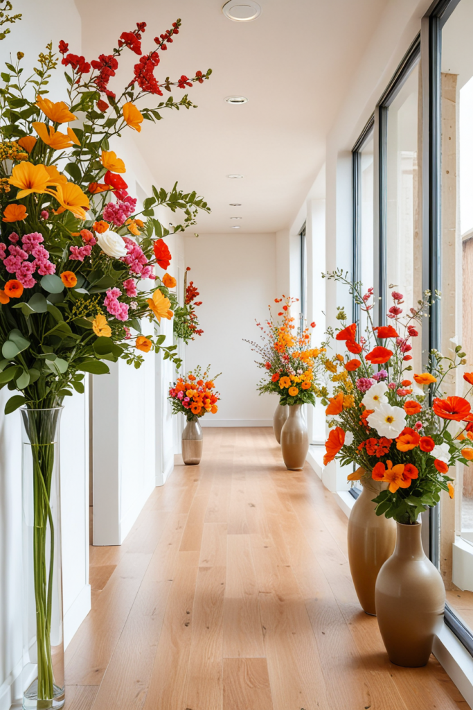 Optimize the corridor with stunning floral arrangements that provide vivacity and elegance to the entire space. Well-placed fresh or beautifully crafted artificial flowers bring life to the surroundings and create a summer atmosphere. As these flowers can be natural focal points, they will definitely capture the attention and liven up the entryway.