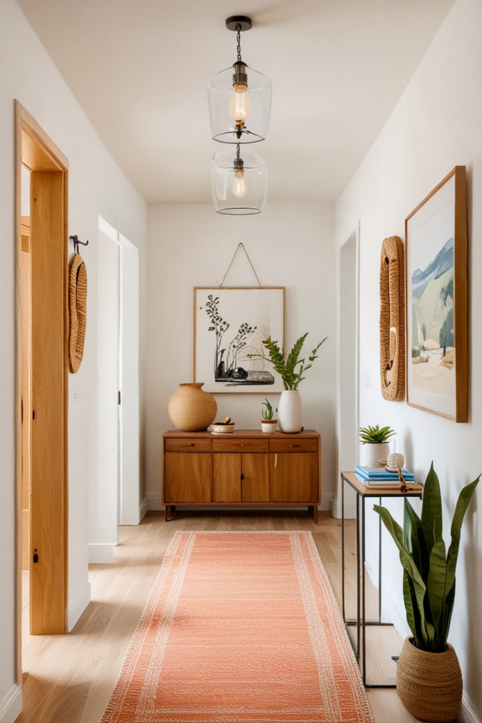 The flow of your summer hallway decor hinges on proper seating arrangements. With the careful placement of benches, console tables, and even storage units, the functionality, as well as aesthetic appeal of the hallway can be greatly enhanced. Striking an ideal ratio of seating and storage not only maximizes the space but brings in an inviting modern touch.