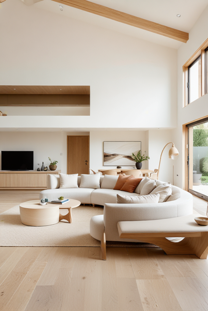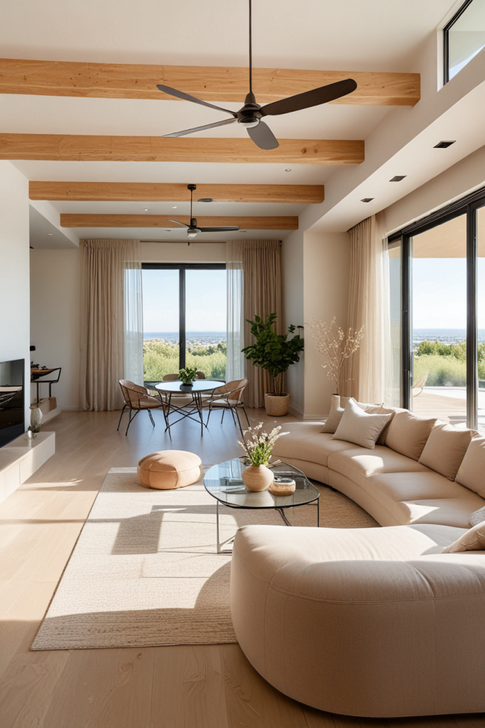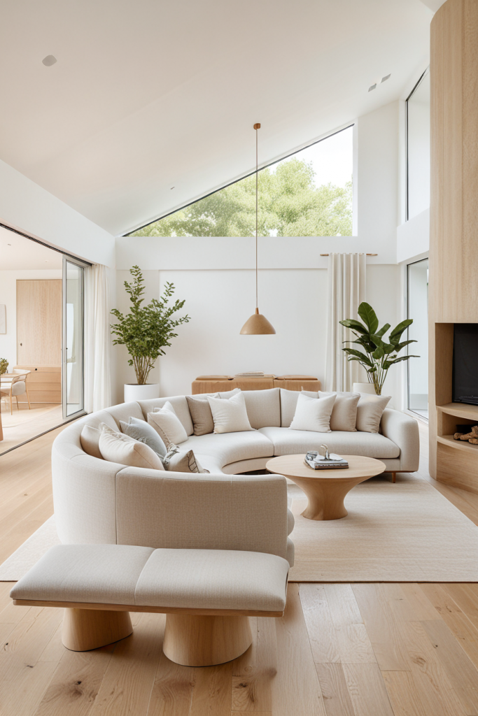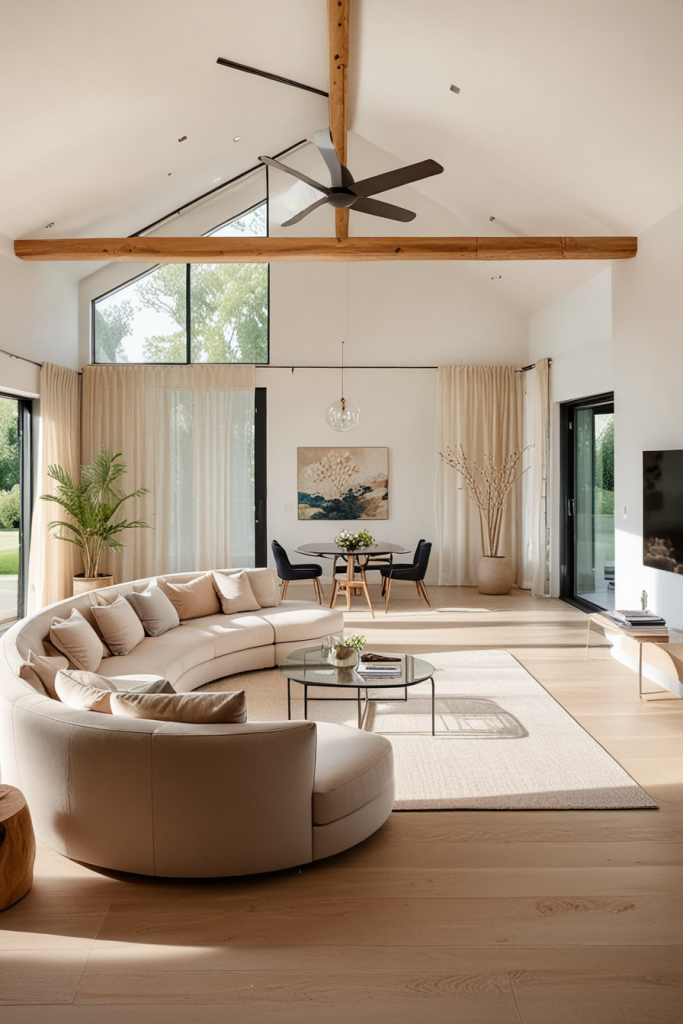 Open-plan living rooms exude the vibe of spending summers at a vacation home. Design with supple contours in mind—furniture should be soft, light linens, airy curtains, and neutral rugs evoke summer vibes. Go for sculptural pendant lights and set decor to minimal but elegant, using natural stone, wood, and glass. The spaces are effortlessly relaxed yet curated, ideal for the seamless flow between indoor and outdoor living in summer.