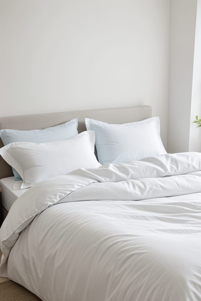 Modern Summer Bedding in Crisp Whites and Soft Blues