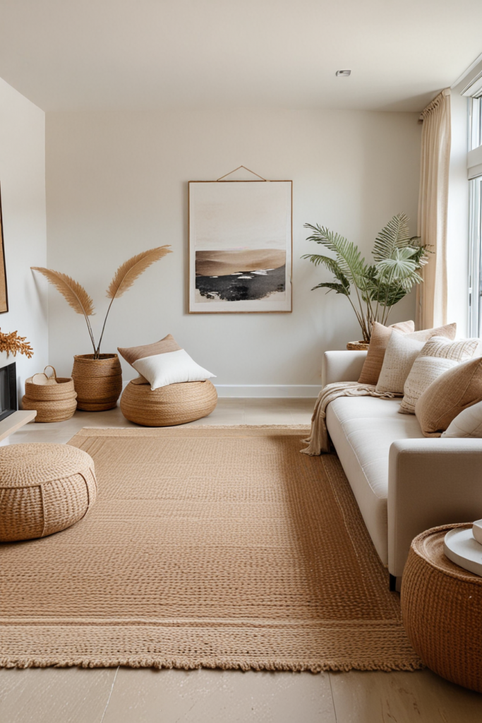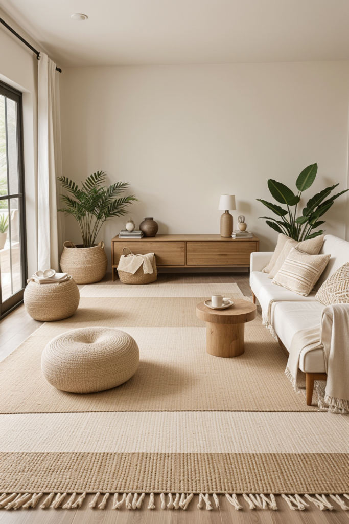 Layered Textiles and Summer Rugs in Earthy Neutrals