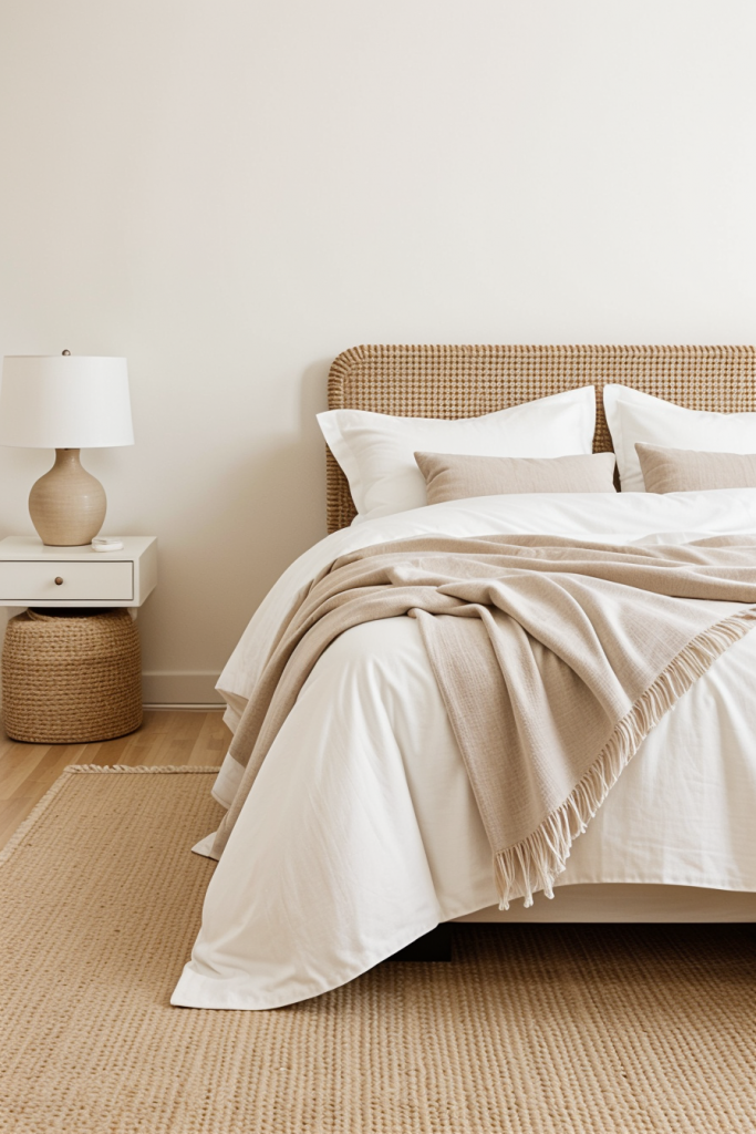 Layering Soft Neutrals with Summer Textures in the Bedroom