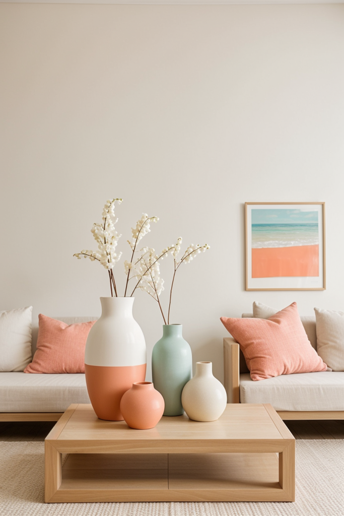 Designer Decor Accents in Coral, Seafoam, and Sand Tones