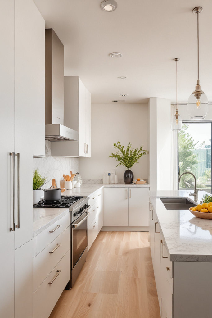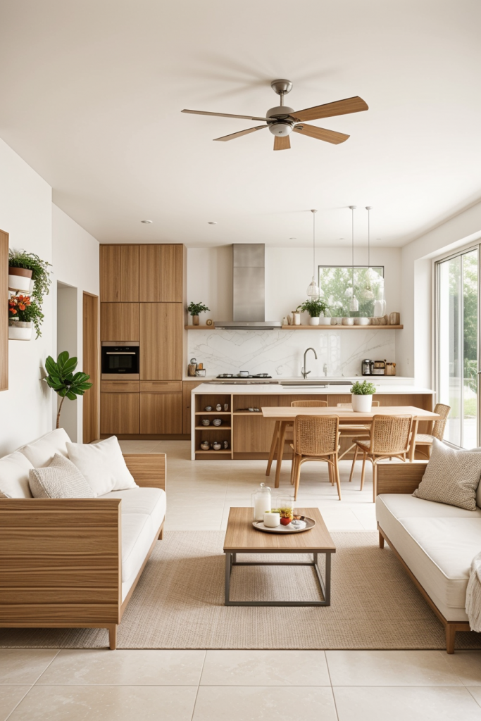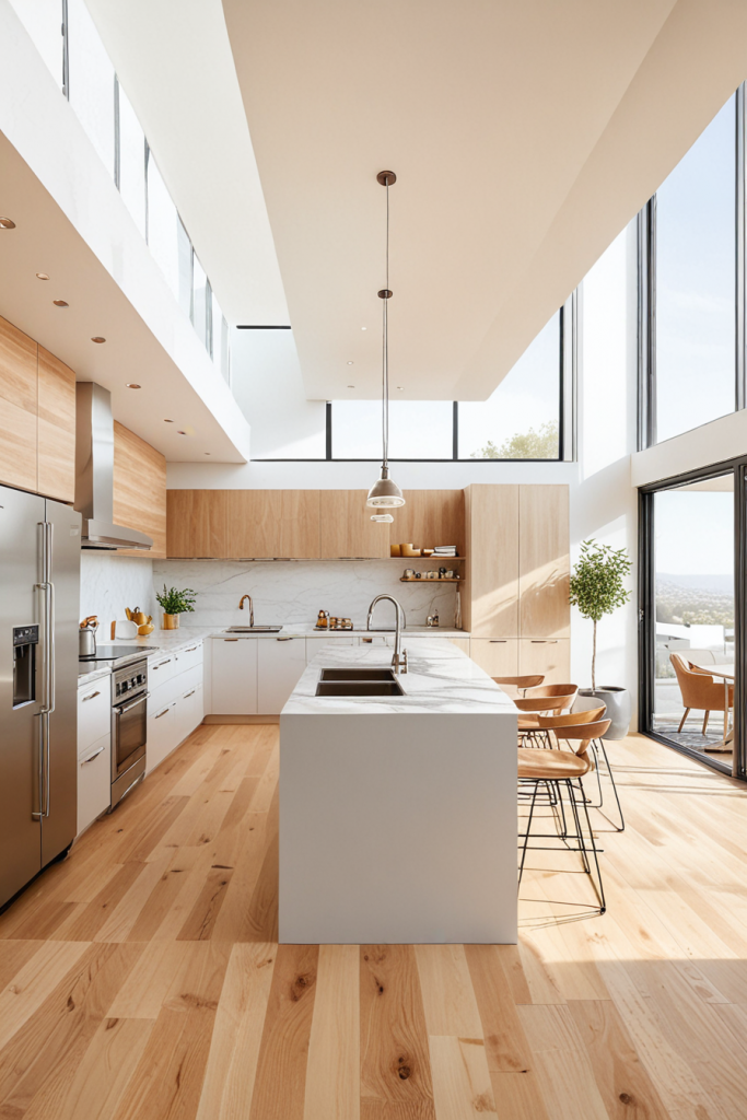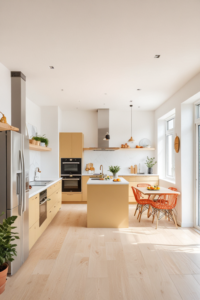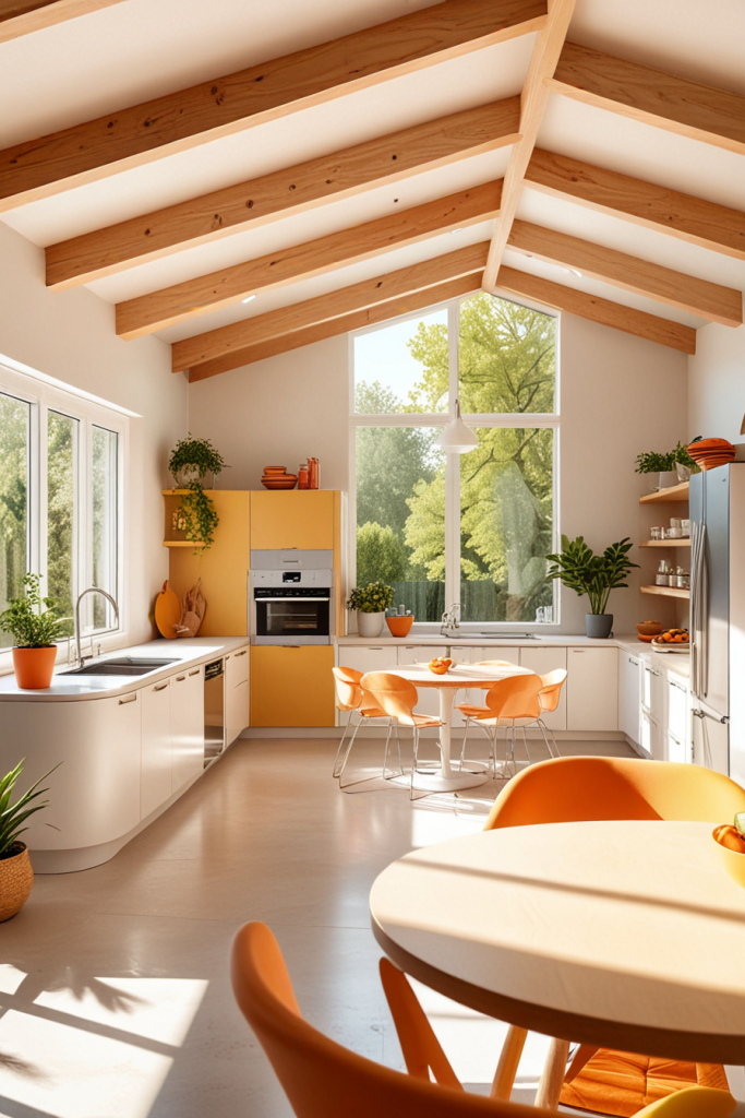Modern style kitchens integrate social and food preparation activities by having dining places encourage sharing meals as well as entertaining. These Applied Zones have simple, relaxed, and accentuated furnishing that match modern summer kitchens. The arrangement is spacious and welcoming at the same time, further enhanced by the summer decoration style of the kitchen which shows the utility of spaces in a stylish manner.