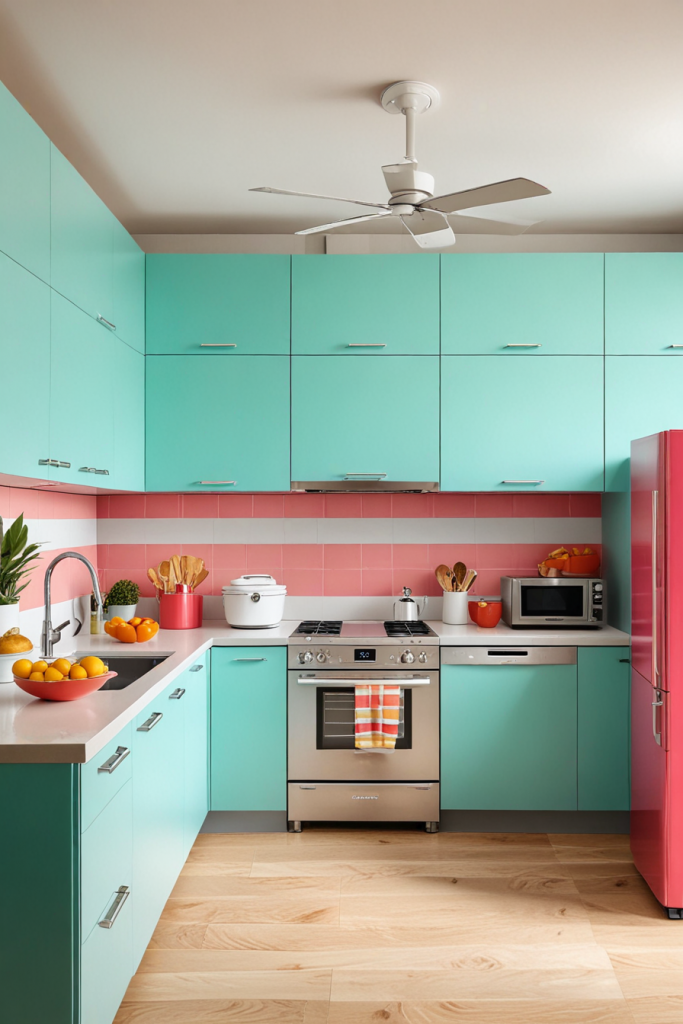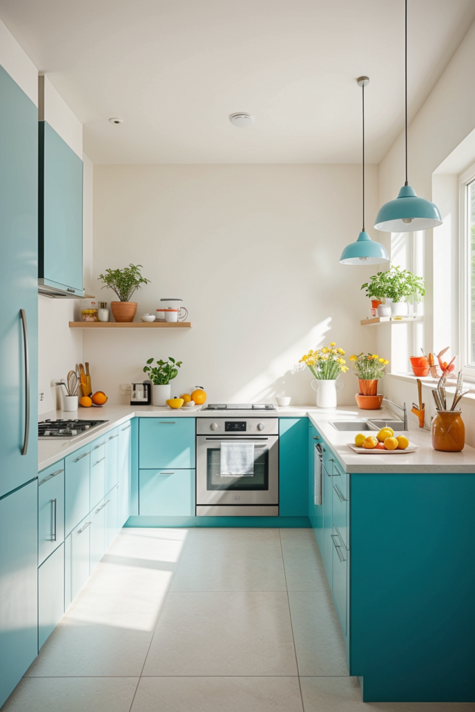 Sleek bold colored appliances add an artistic touch to the kitchen by transforming usual cooking spaces into modern masterpieces. The sharp colors offered on refrigerators, ovens, and dishwashers further pay attention to the summer vibe and even the most important parts are stylish. These appliances, built into modern summer kitchens, add beauty to summer kitchen arrangements, improving the design.