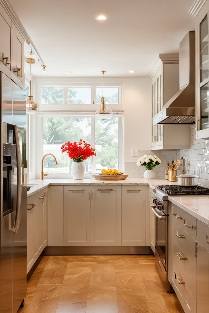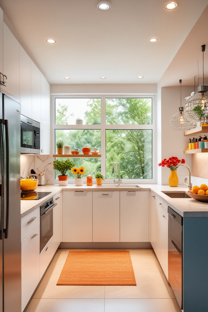 Metallic kitchen accents instill greater elegance and sophistication to summer kitchen design and enhance the overall feel of the kitchen. These metallic accents can be found on as hardware, decor, and various kitchen tools, greatly amplifying bright colors which results into a kitchen filled with modern elegance. The combination of metallic colors with lively decor results into a striking blend of sophistication and contemporary style.