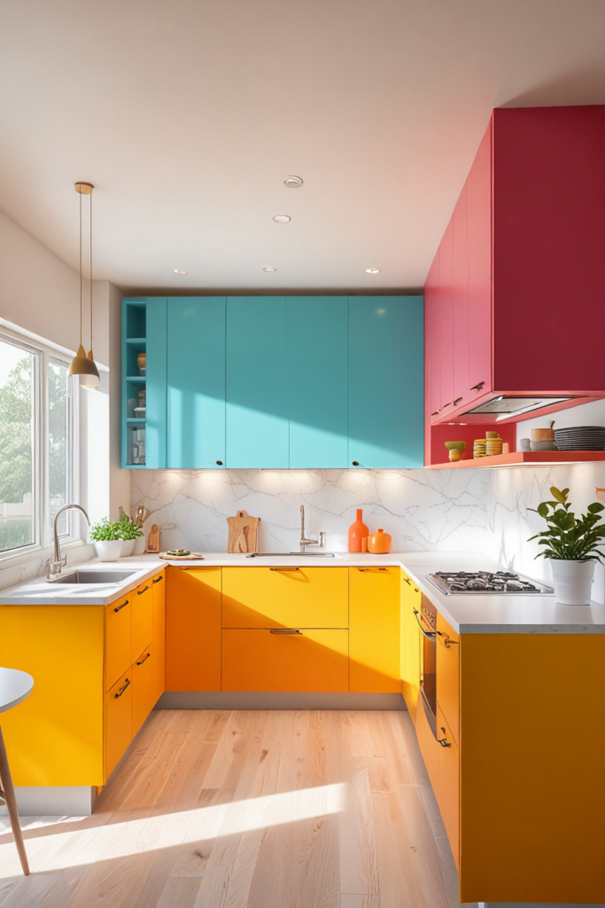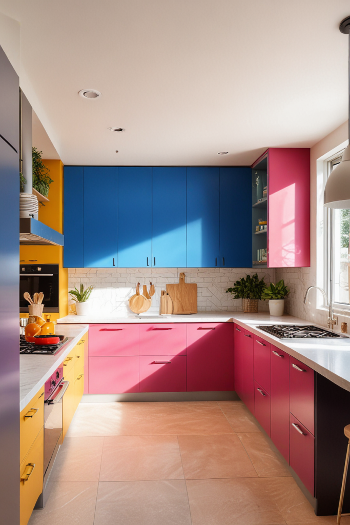 In modern summer kitchens, bold cabinets go well with colorful storage options offering both practical and striking design features. These components not only provide sufficient space for organizing materials, but also enhance the overall décor as stunning focal points. With the proper integration of storage components, the functionality of the space is maximized while keeping the clutter hidden, allowing the vibrant and bold aesthetics of the kitchen to stand out.