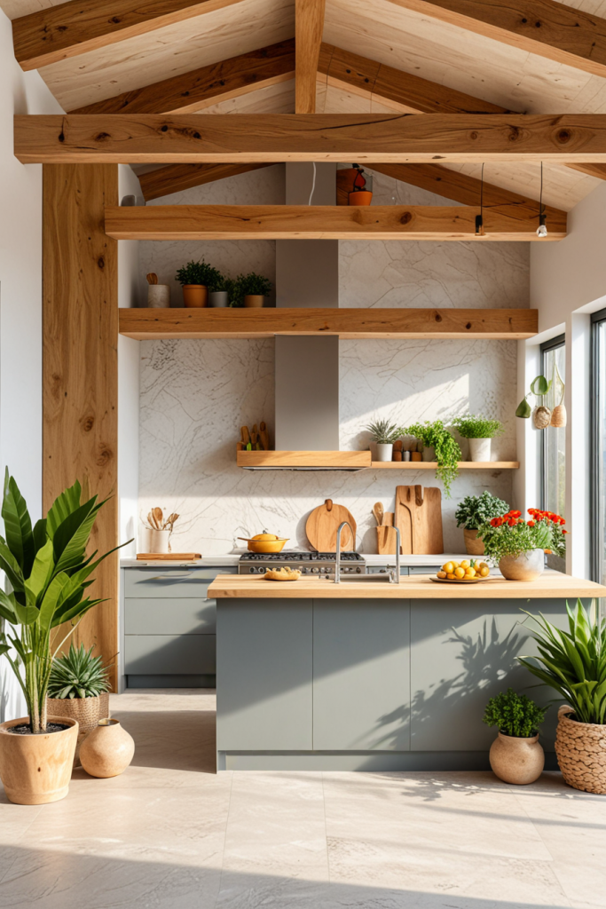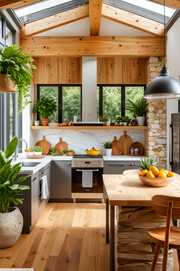 You can feel the spirit of summer by incorporating Nature in the design of a Summer kitchen. Heaving stone textures and wood accents evoke vivid imagery of summer that will bring joy to you and your loved ones. Adding wooden sculptures, colorful flowers and stone textures will fill the room with warmth and charm and balance the beauty of nature with modern design. This will surely add vibrancy, warmth and comfort to modern summer kitchens.