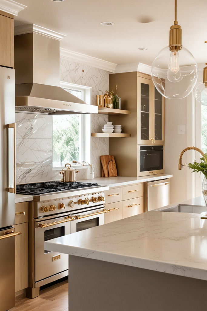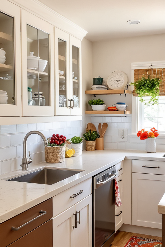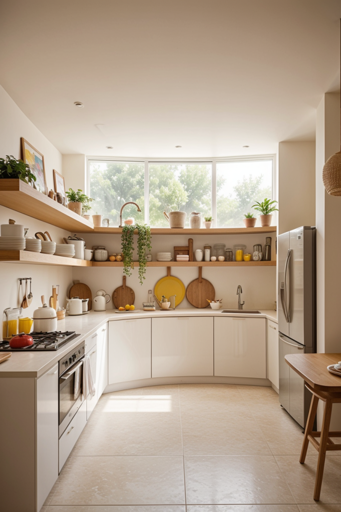 Open shelving makes it easy to exhibit collections and preserves vibrant dishware, accessories, and artisanal decor in modern summer kitchens. This design feature also enables the effortless integration of décor items and accessories, further enriching summer kitchens sprucing up the decor. Besides adding storage, its purpose goes beyond meeting the storage need as it increases the visual appeal adding depth to modern summer kitchens and enhancing the kitchen’s beauty.