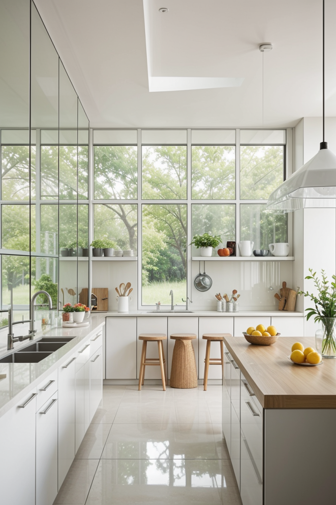 Outdoor inspirations infuse modern summer kitchens with a unique blend of indoor comfort and outdoor charm. Flora, botanic embellishments, and large windows which are here to help with energy efficiency as well as temperature control, enhance the feel of the summer kitchen. Moreover, it can be said that cuisine design is highly influenced by nature and modern style, owing to contemporary design concepts, the use of green vegetation as well as natural light.