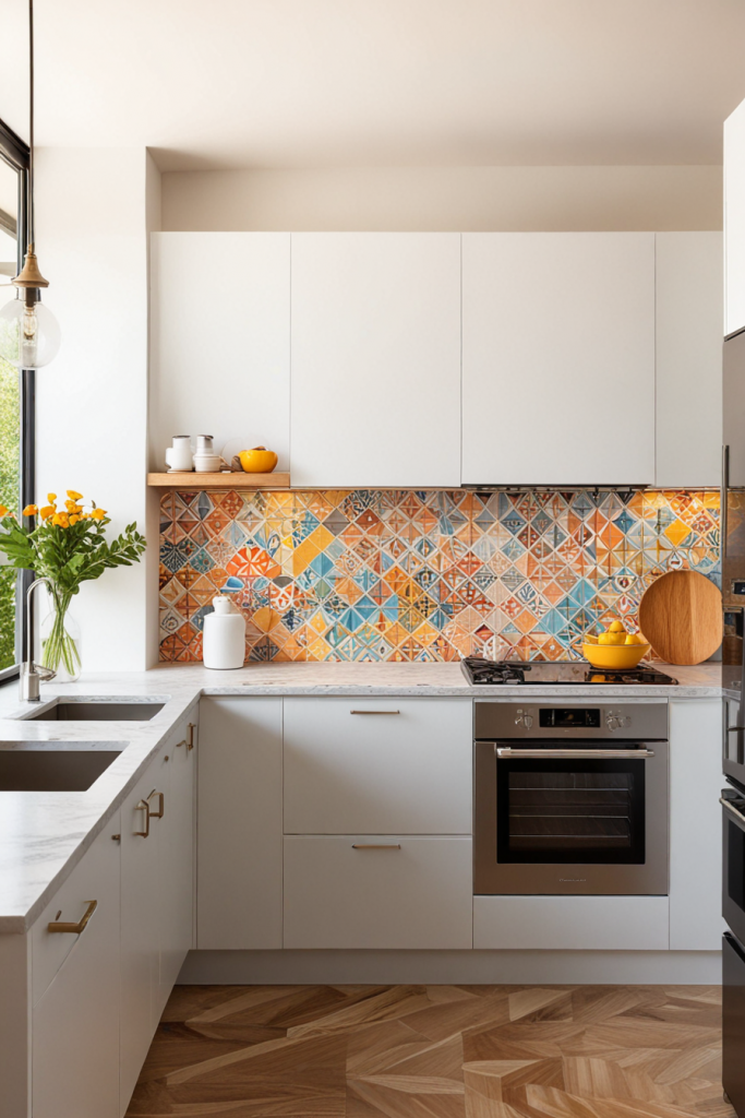 Creative backsplashes with intricate designs serve as the highlight of summer kitchens. Besides protecting walls, backsplashes are creative pieces of furniture, often serving as the centerpiece of the room. Increasingly popular are functional backsplashes that serve as works of art, with designs ranging from geometric shapes to nature-inspired patterns.