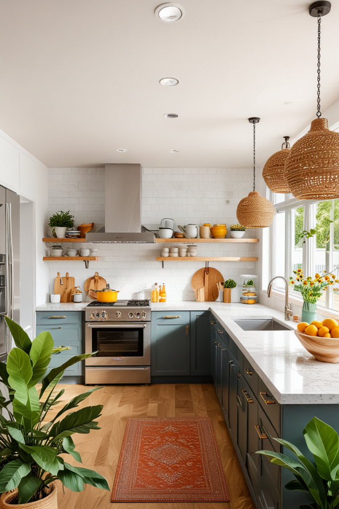 One major characteristic of summer kitchen design is the bright colors and lively patterns that turn everyday spaces into astonishing displays of character. This includes spaced filled with bold cabinetry, unique lights, and playful decor which all contribute to a warm welcoming environment. The splash of color does not just add liveliness to the room, but also symbolizes the joy one feels during summer.
