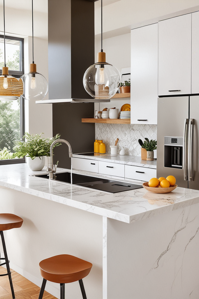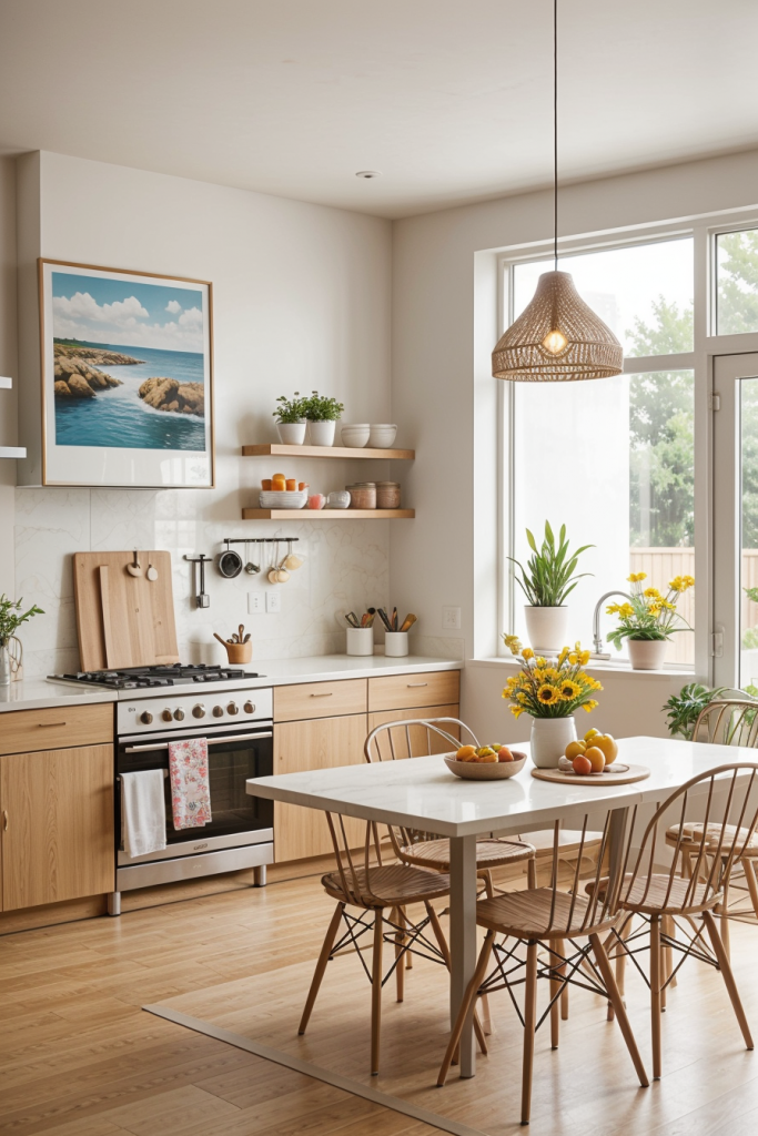 Finding a middle ground between bold detailing and minimalist aesthetic helps create decor that is both striking and serene. This style integrates statement pieces and bright hues along with uncluttered spaces and clean lines to ensure that every decoration pertaining to summer kitchens contributes to a cohesive sophisticated look in the kitchen. In contemporary summer kitchens, this balance enables bright bold accents to stand out without harshly dominating the space resulting in a polished, yet vibrant feel to the atmosphere.