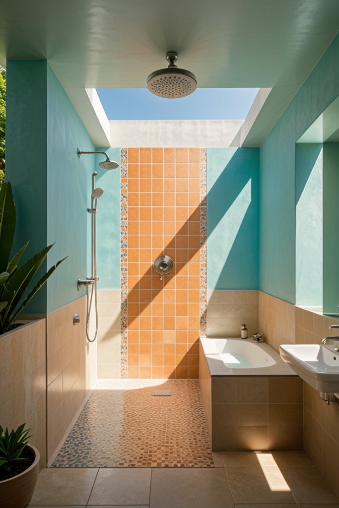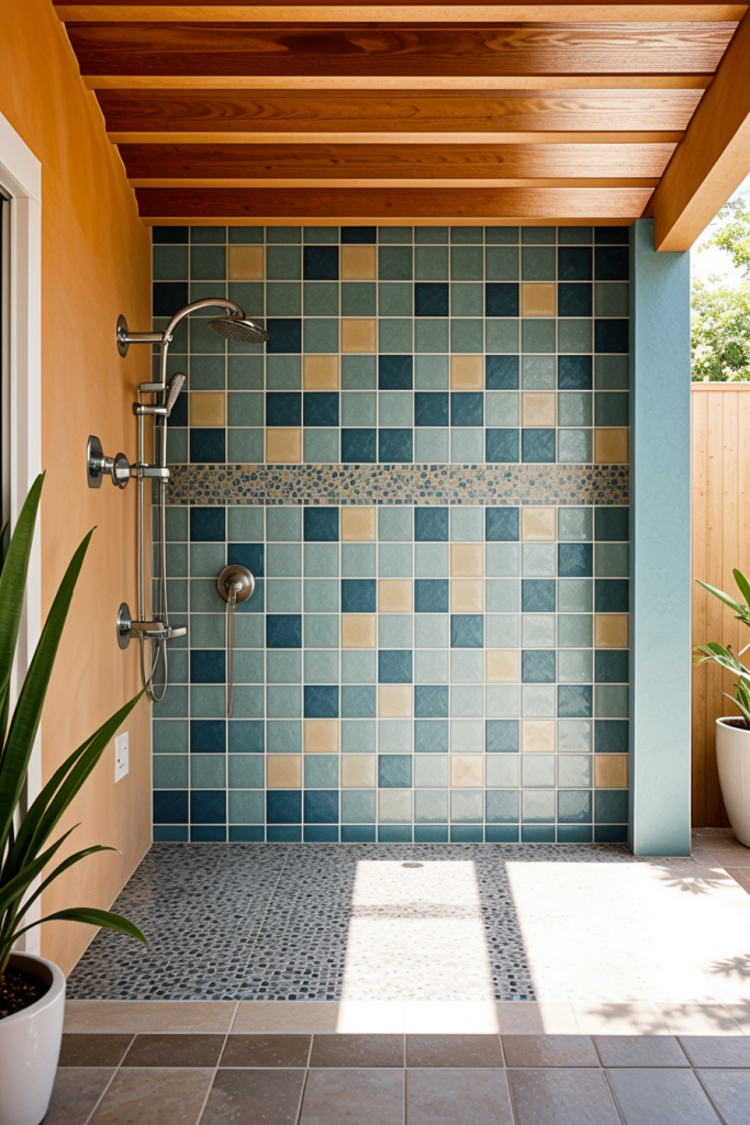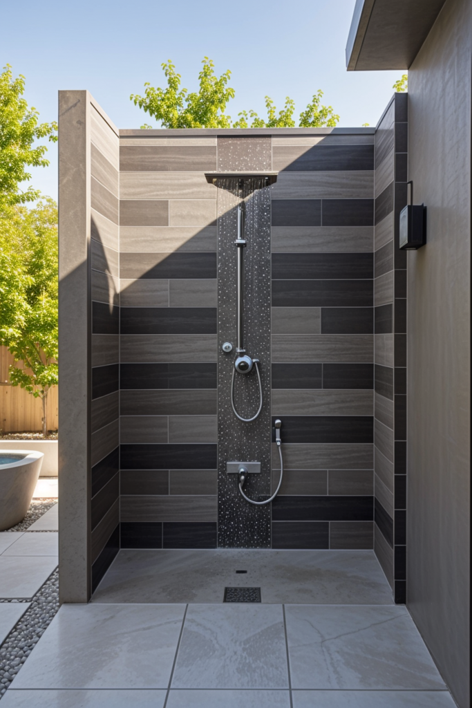 Your outdoor shower style sets the tone for the entire experience, whether you lean towards ultra-modern minimalism or a more eclectic, nature-inspired aesthetic. This approach incorporates bold lines, modern materials, and artistic tile work to create a statement piece that reflects personal style and sophistication.