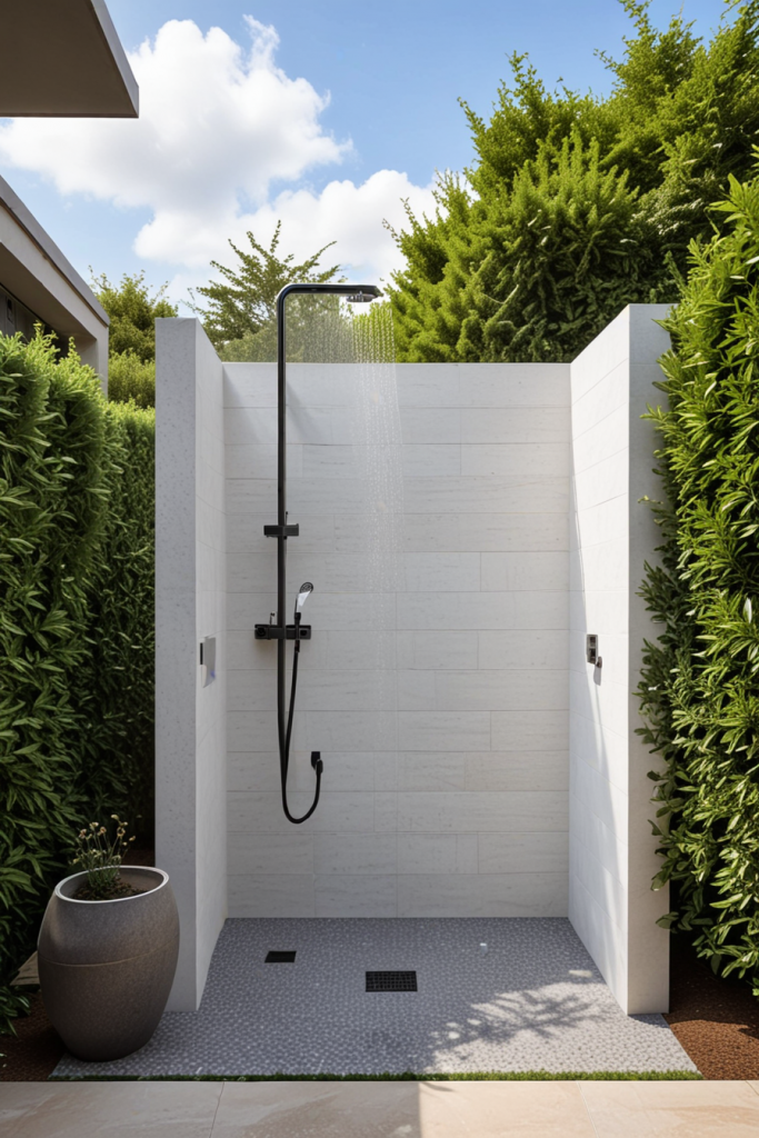 Two key factors to consider when creating an inviting outdoor shower space are privacy and imagination. Privacy-enhancing design features like sophisticated screens, hedges, or partitions can be added to seclude your area. This method guarantees that your outdoor summer showers remain fashionable.