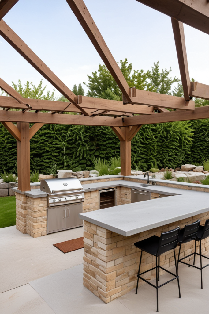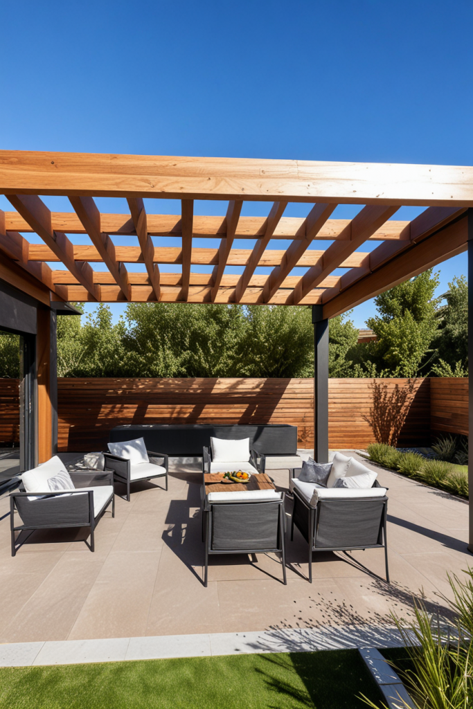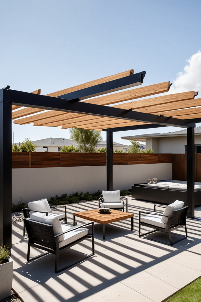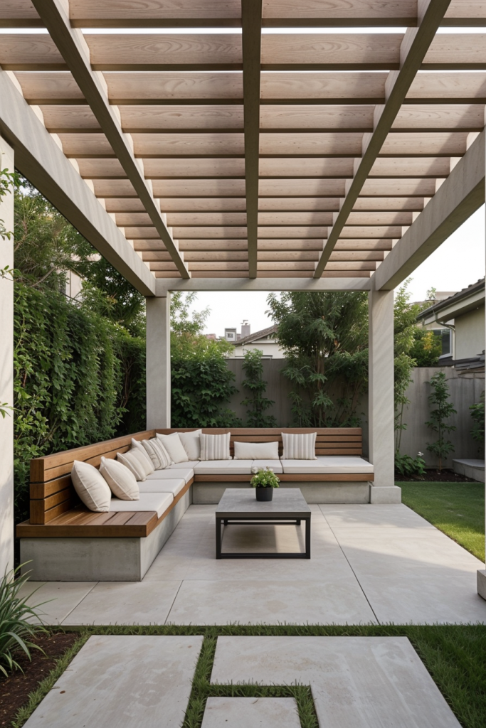 Concrete and Wood Pergolas for a Modern Fusion Look