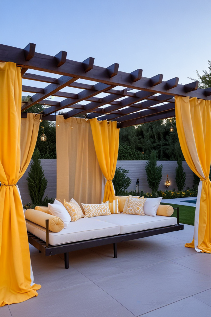 A daybed that is suspended in a pergola is the most stunning summer getaway. It compliments both beauty and vanity with its rich design elements. For construction, use block timber as well as a steel frame to support the bed and top it off with thick cushions and bolsters which can resist harsh weather. Add side tables and flowing curtains, thereby shifting the setting to a resort and enhancing elegance and comfort. This allows for mid-afternoon slumbers or late night rest on the magnificent daybed.