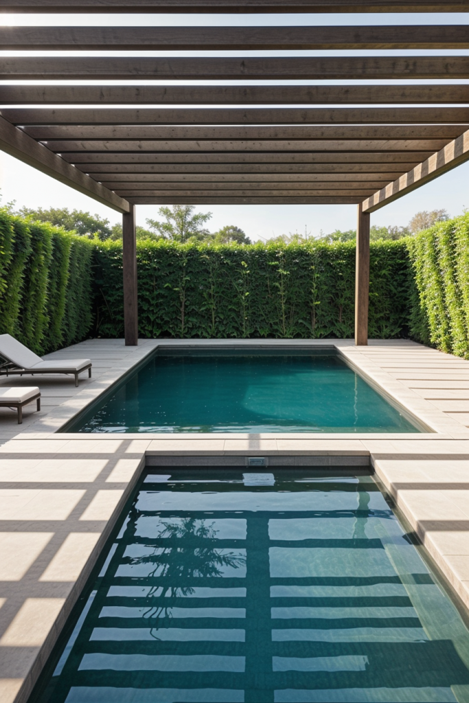The chic accommodation luxury can be brought home by installing pergolas that are placed overhead or semi-wrapped around a plunge pool. The resort-style feel can further enhanced by using sleek sun loungers, warm stone and smooth pavers. This combination stands out not only for compact yards, but also for elevating the intent behind each and every feature.
