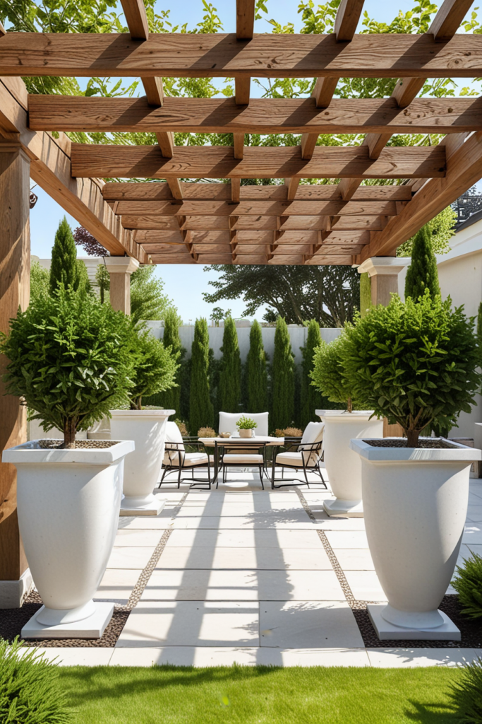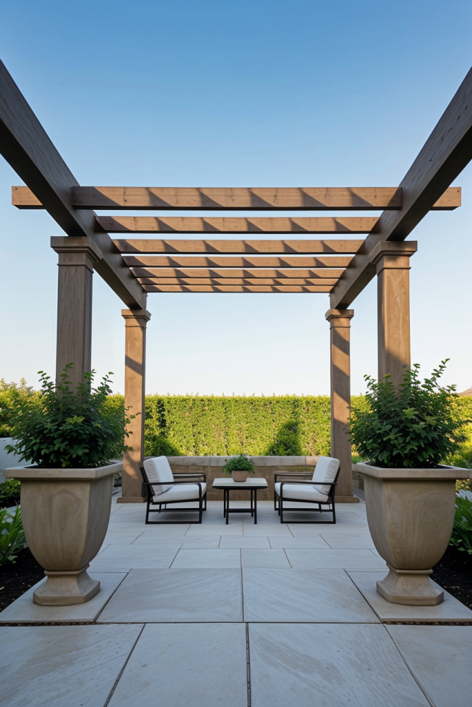 The addition of oversized planters transforms sustaining elegance and structure through framing pergolos. Frequently fashioned with boxwood, sculptural plants, or ornamental grasses, these symmetrical features do more than decorate—they establish boundaries and nature’s visual beat. Such decor is ideal for terraces and formal gardens where control and balance are primary. Use subdued colored furniture to create neutral tones and allow the meticulously curated-balanced symmetry the attention it deserves.