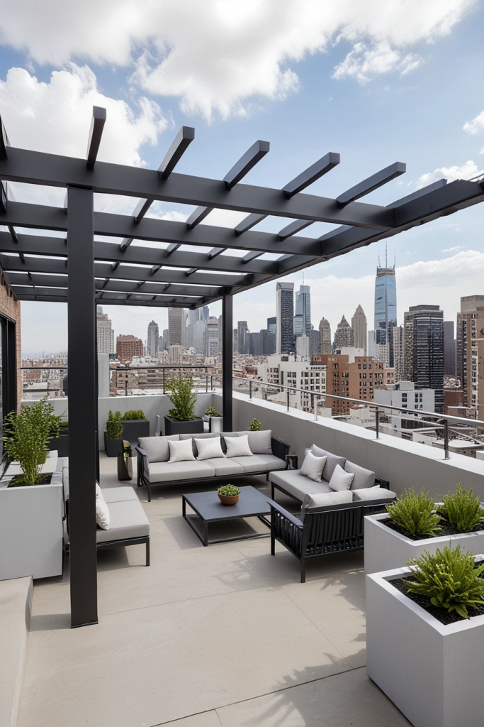 Sleek Pergola Designs for Urban Rooftop Terraces