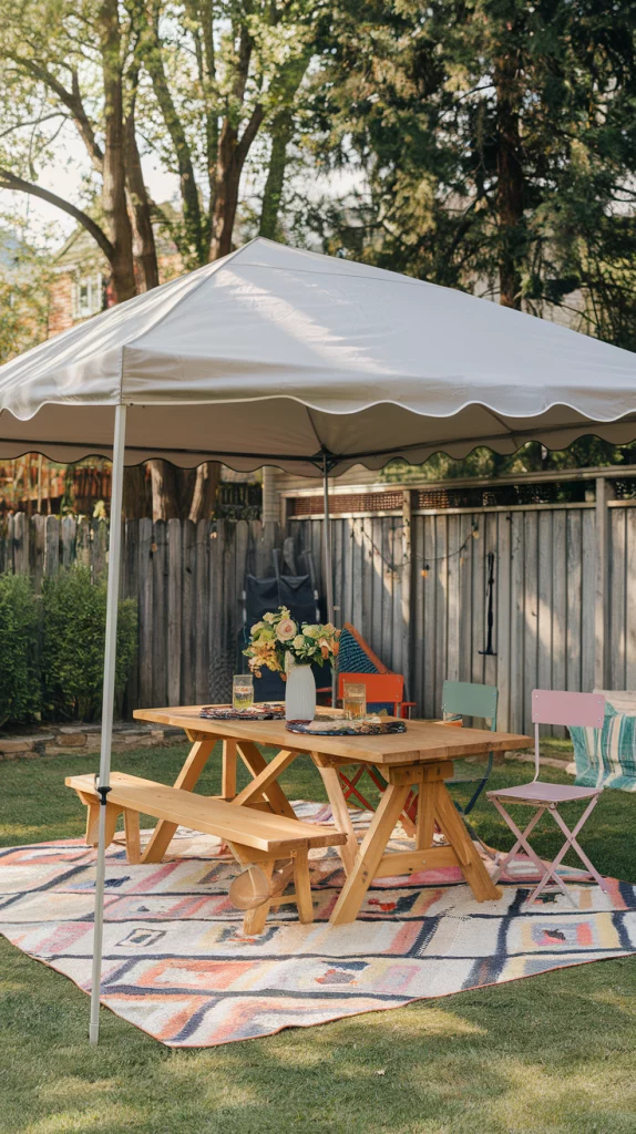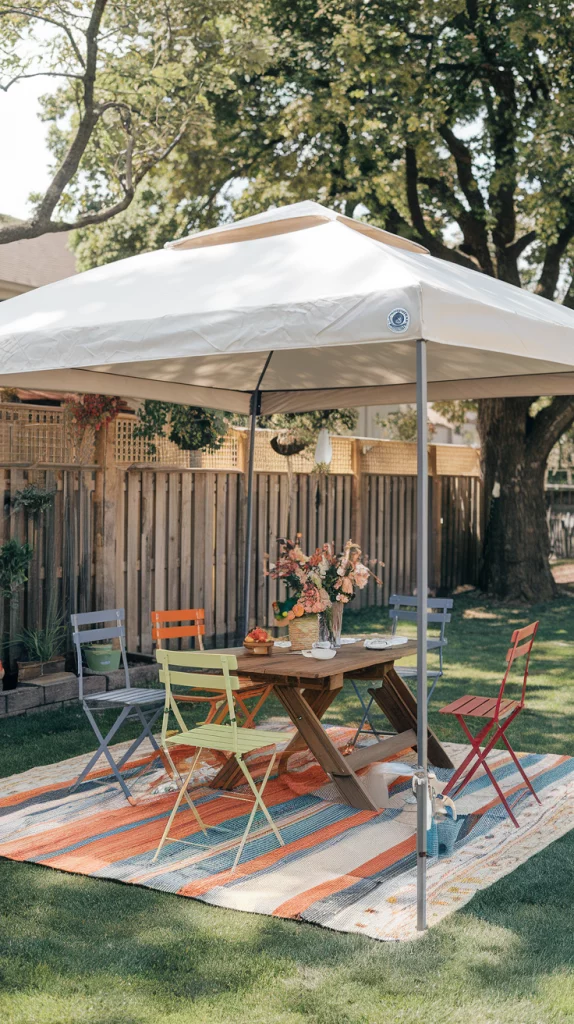 A freestanding canopy is a portable and adaptable shading solution that provides instant relief from the sun. Available in various sizes, shapes, and colors, these canopies can be set up anywhere, making them perfect for temporary or seasonal use. Adding LED string lights, side curtains, or outdoor rugs transforms the space into a comfortable outdoor retreat.
