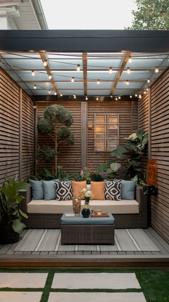 An enclosed patio cover offers a dual benefit—shade and privacy. These structures can include pergolas with side panels, screened porches, or glass enclosures, creating a secluded outdoor retreat. Adding curtains, retractable screens, or wooden slats enhances the cozy atmosphere while maintaining ventilation and natural light.