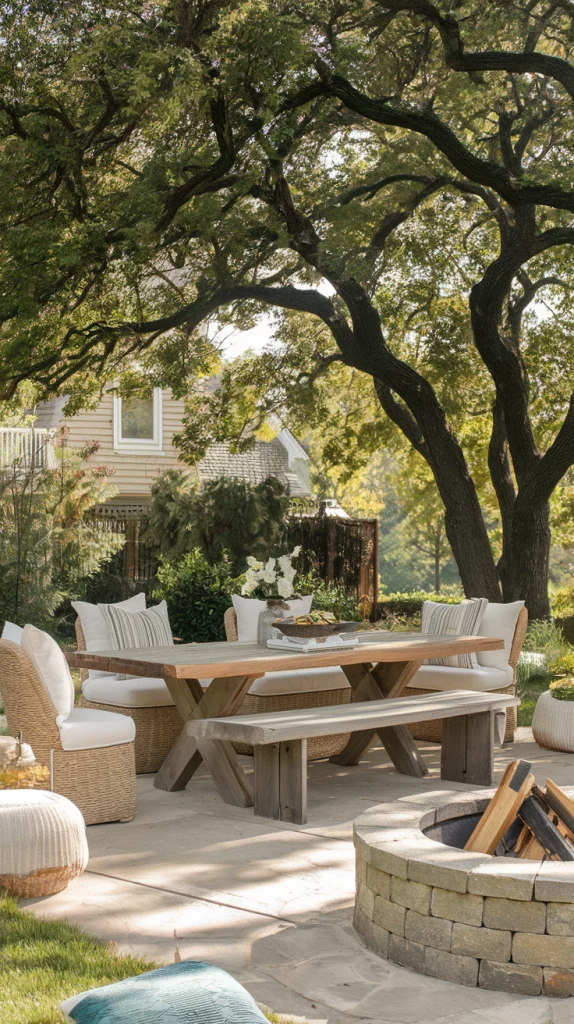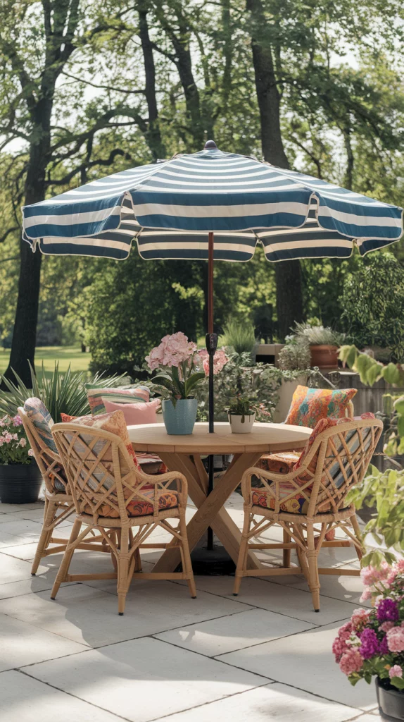 For a permanent and environmentally friendly shading solution, shade trees provide excellent sun coverage while enhancing outdoor beauty. Choosing fast-growing trees like maples, oaks, or jacarandas ensures natural cooling during hot months. Pairing trees with stone pathways, wooden benches, and flowering shrubs creates a picturesque and inviting patio setting.