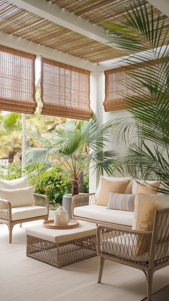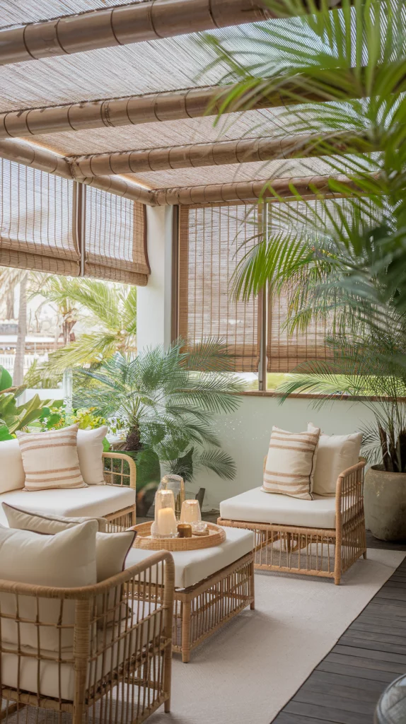 Roll-Up Bamboo Shades for a Tropical Patio Vibe