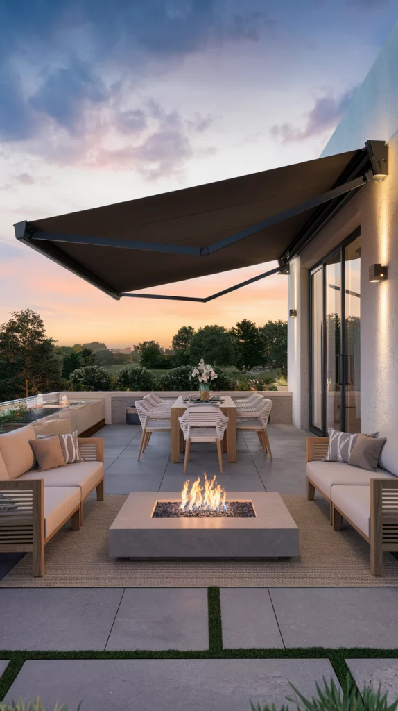 Retractable awnings provide the best of both worlds—shade when needed and open space when desired. These motorized or manual awnings come in various materials like UV-resistant fabric or aluminum for durability. Ideal for patio dining areas, retractable awnings blend with both modern and traditional exteriors, making them a versatile option for any outdoor space.