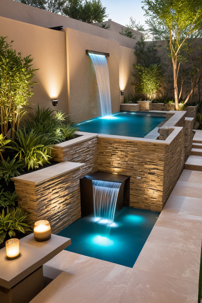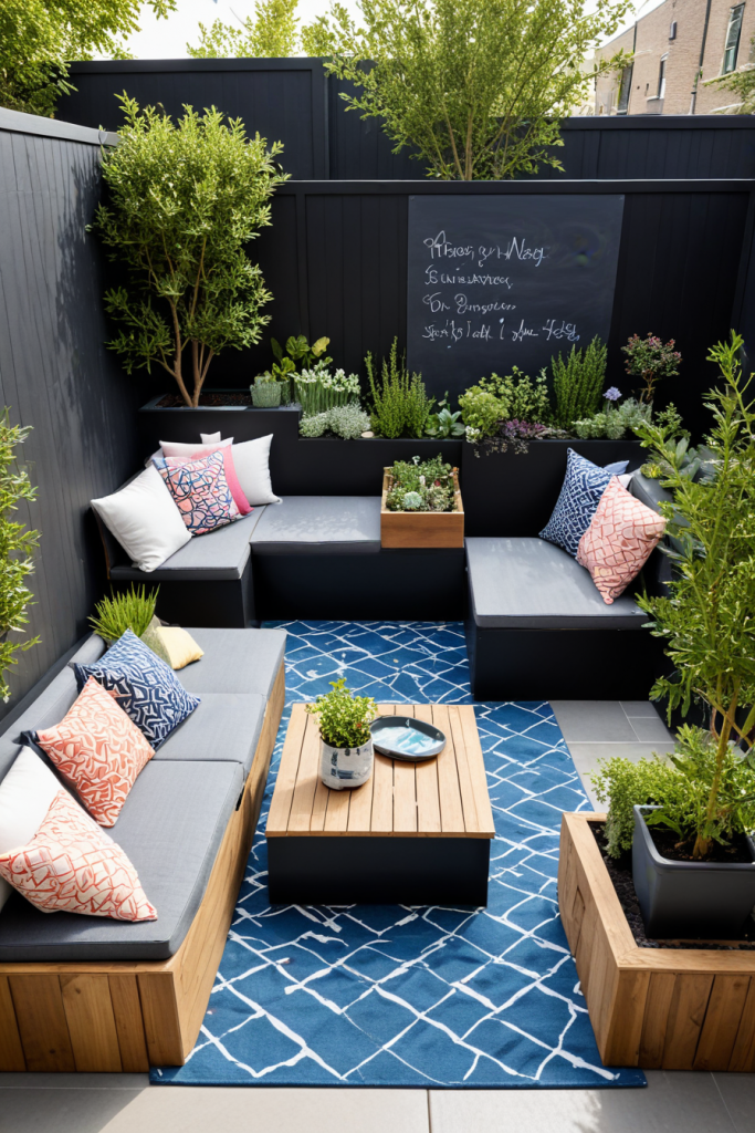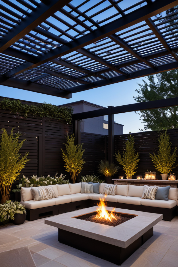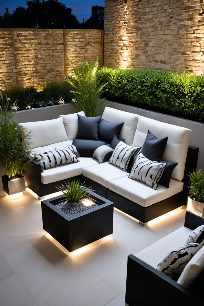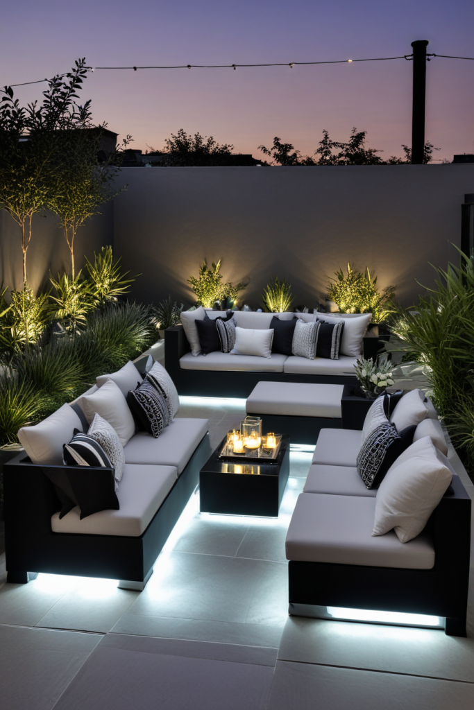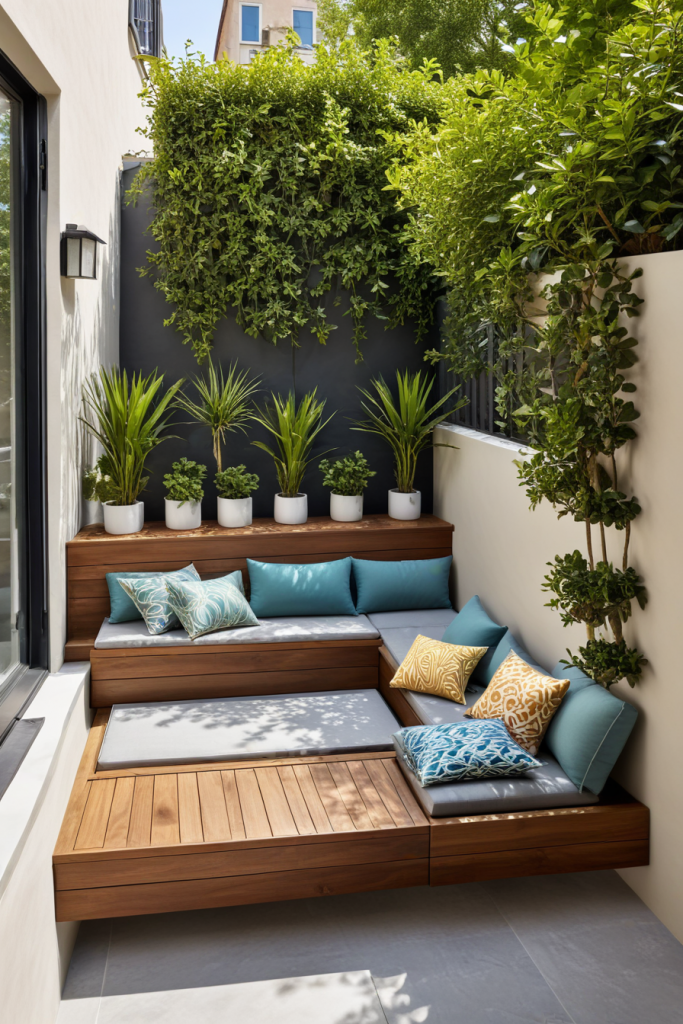 A multi-level terrace is a dynamic way to maximize outdoor space while adding architectural interest. Use built-in concrete or wooden seating with plush weather-resistant cushions to create distinct areas for lounging and dining. Integrate LED step lighting and layered planters to enhance depth and make each level feel connected yet unique.