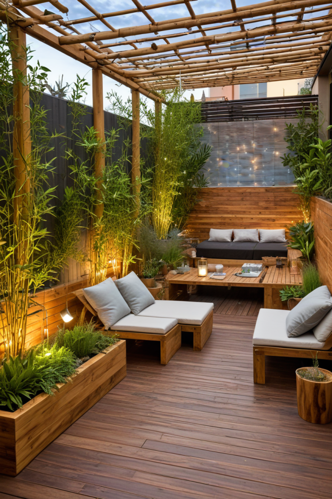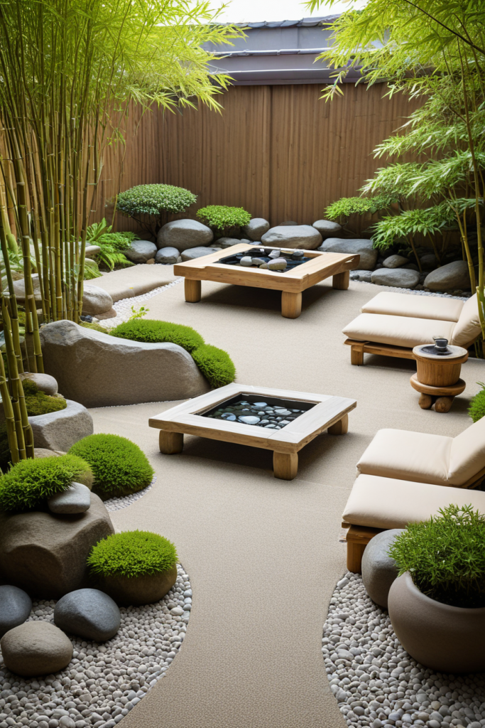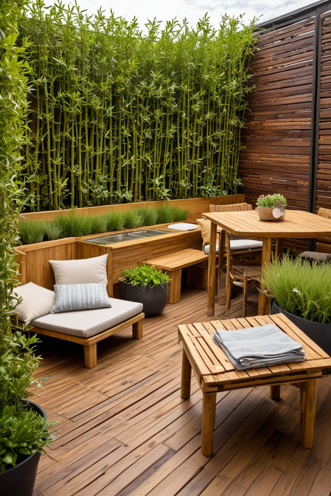 A Japanese Zen terrace is all about simplicity, balance, and natural elements. Choose a neutral color palette, bamboo furniture, stone accents, and a low seating arrangement for a peaceful retreat. Incorporate a small water feature, bonsai trees, and Zen sand gardens to enhance the calm, meditative ambiance.