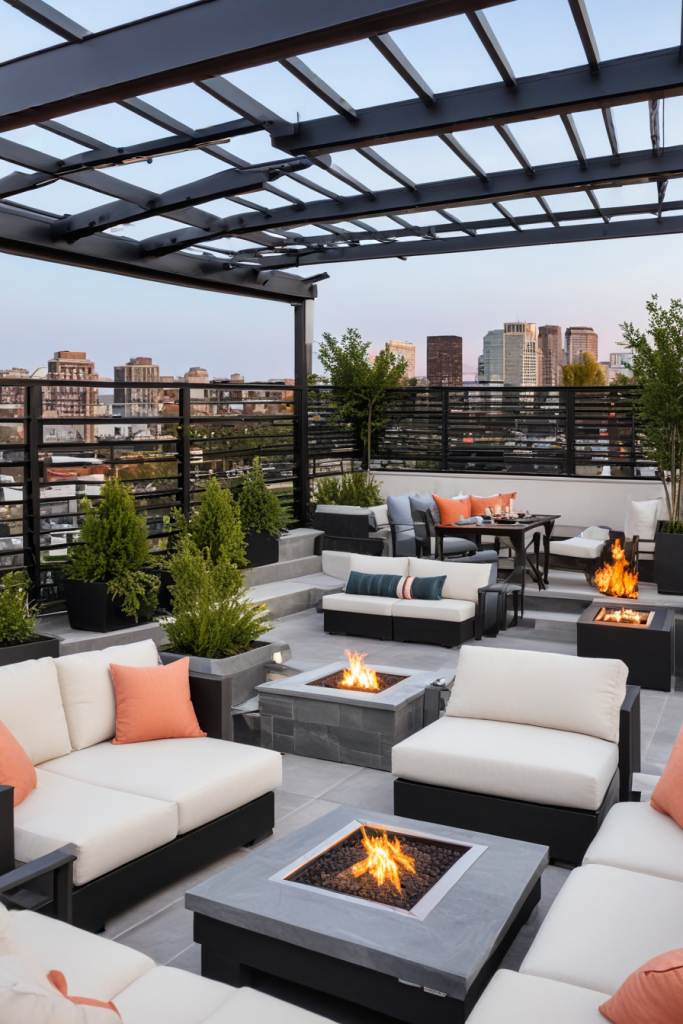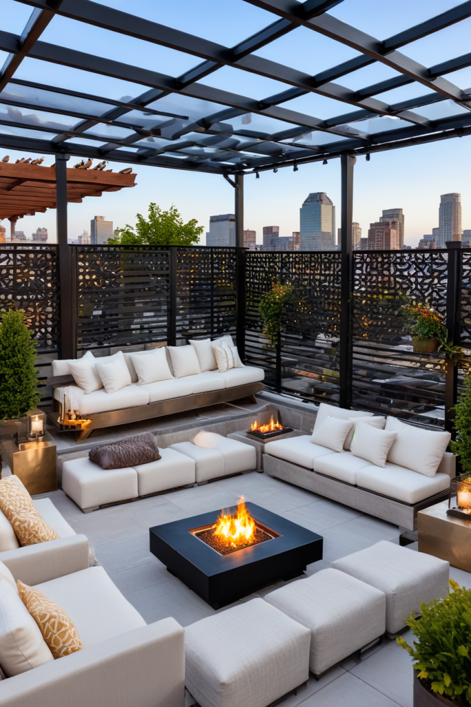 A rooftop terrace should take full advantage of its height with unobstructed views and comfortable lounge seating. Incorporate pergolas or retractable canopies for shade, and use glass railings to enhance the scenery. A fire pit or outdoor fireplace can add warmth and elegance, making it an inviting space year-round.