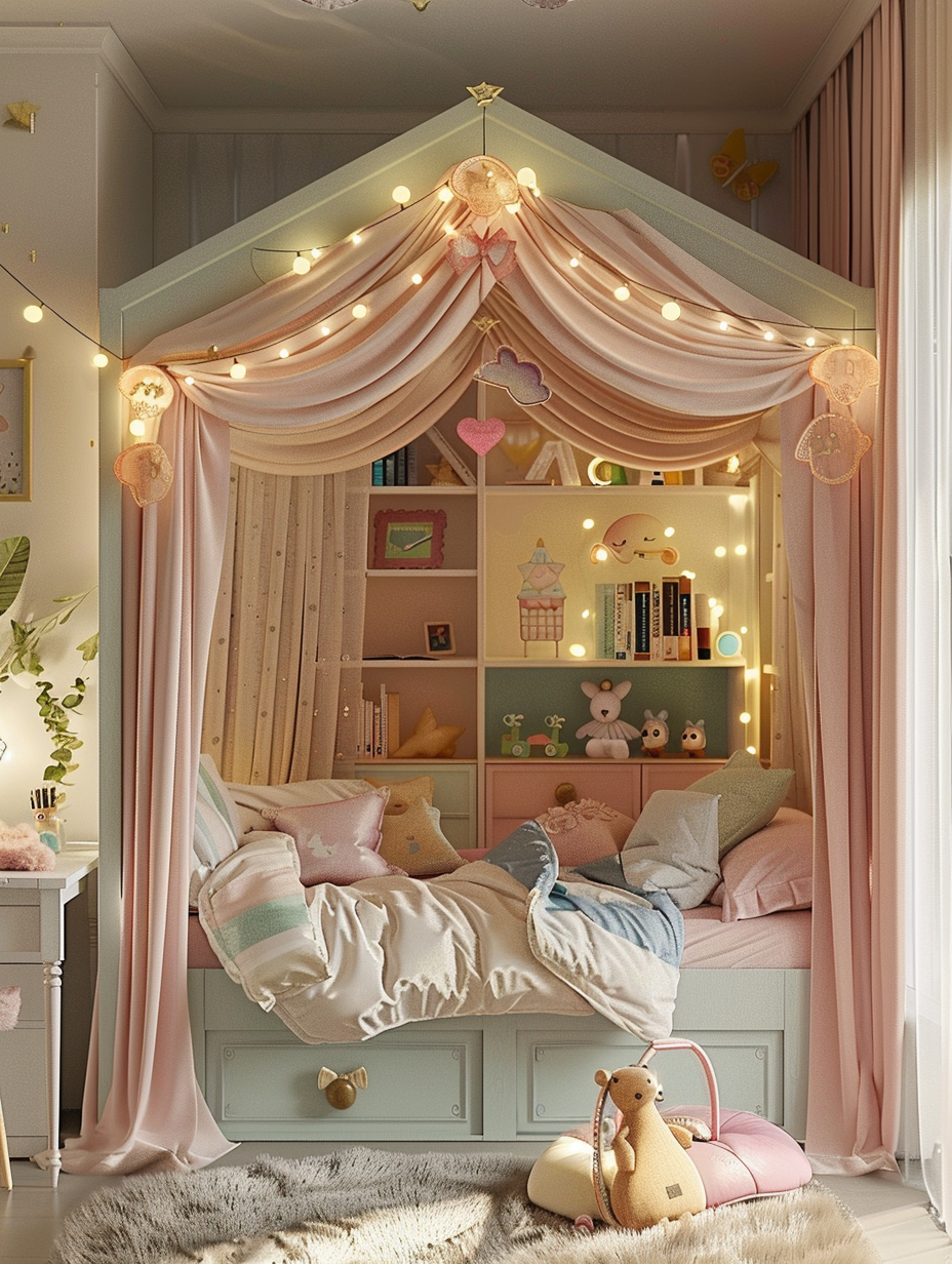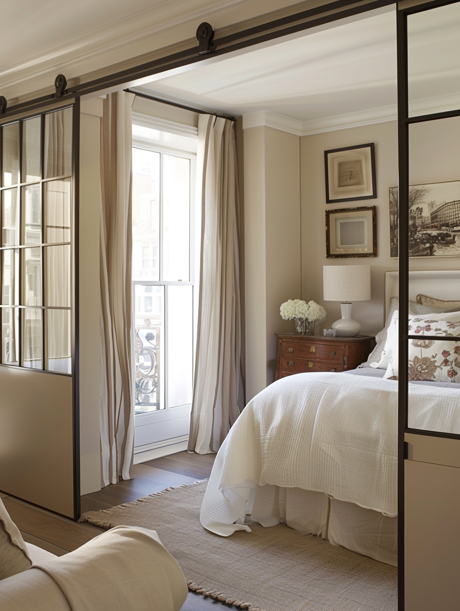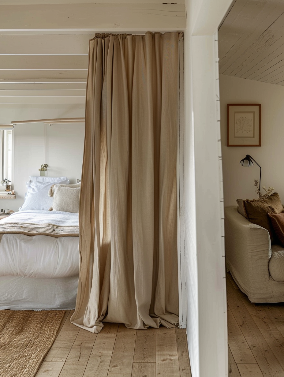 Curtains as a divider can be used to separate the small bedroom into different sections for different activities without doing any permanent damage to it. Firstly, make sure the choosing of soft, light, breezy kind of fabrics interchangeable with the specific room’s decor. This approach is ideal for such rooms that may be too small for a bed and a home office.
