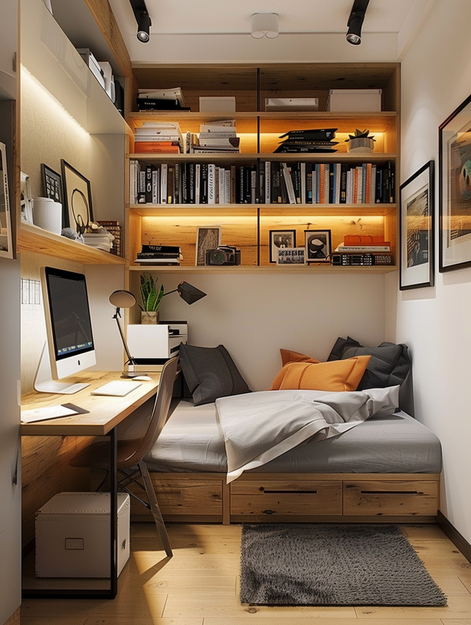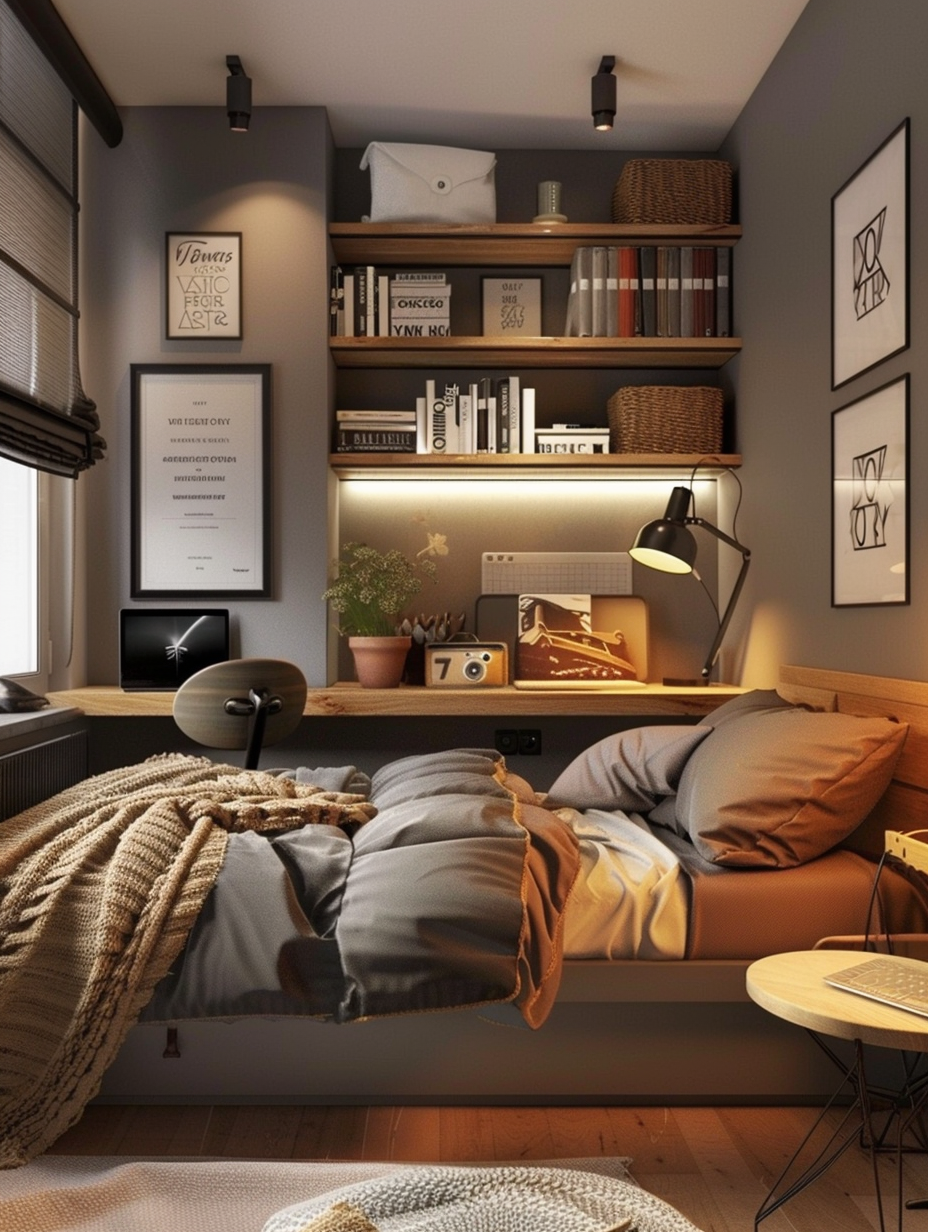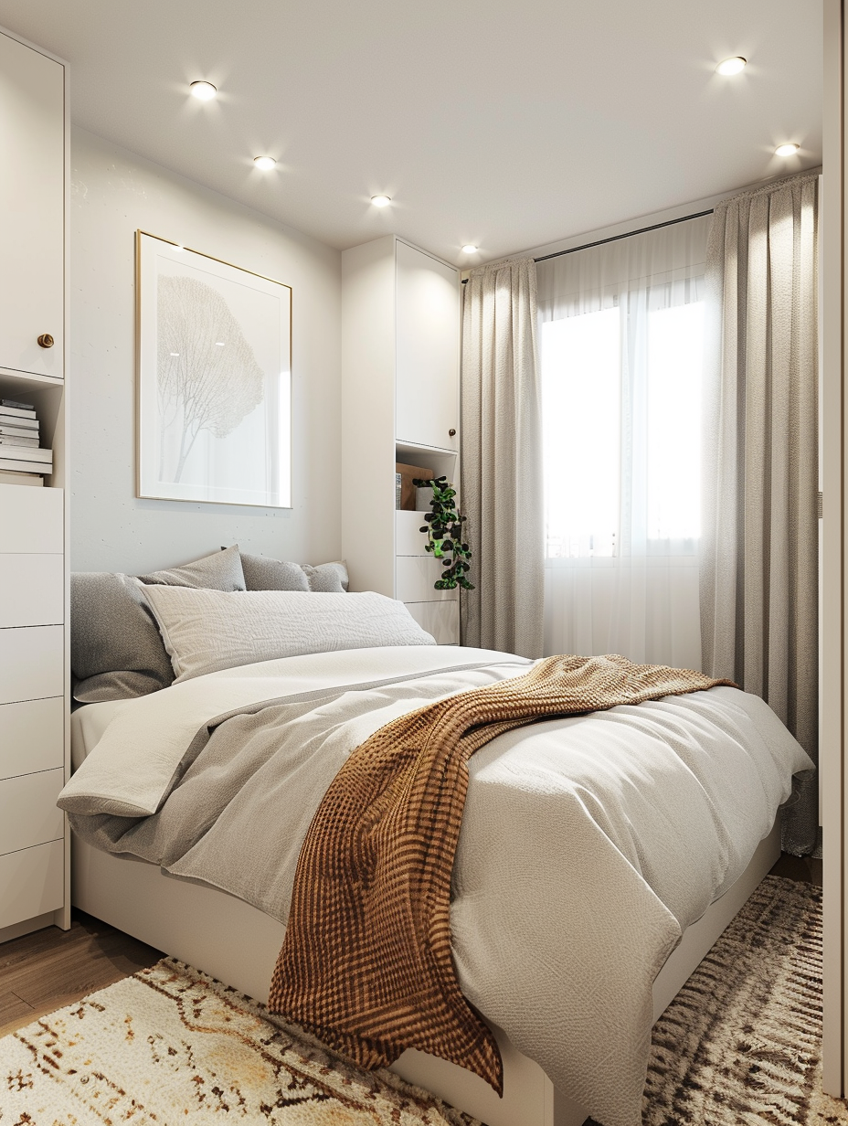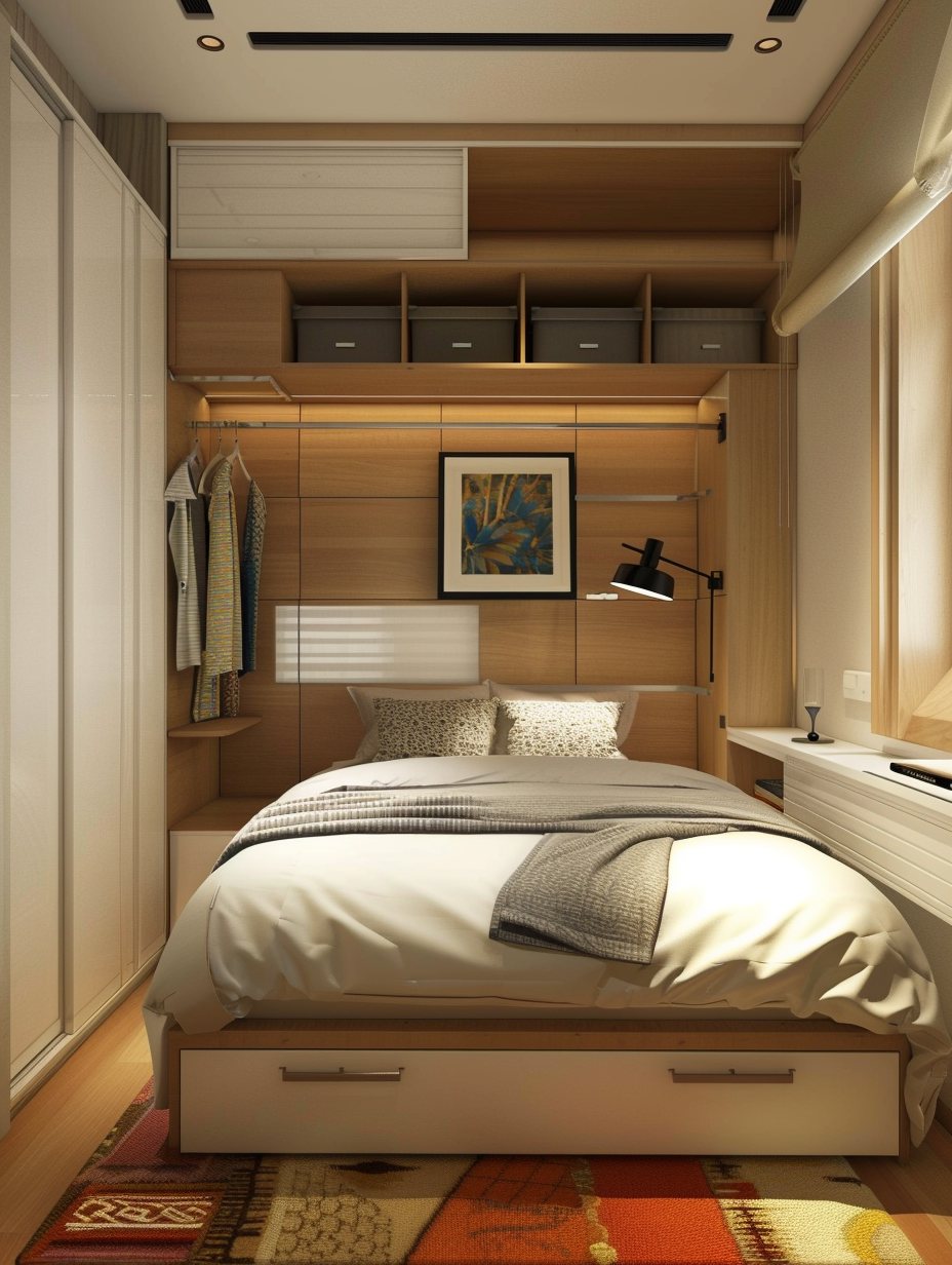 A small bedroom room with multifunction furniture is rule number one. You can opt for pieces that give several uses such as a bed with built-in storage drawers or a desk that doubles as a vanity. A sofa-bed is a clever idea as it gives two functions that are seating and sleeping space. Such practical and multifunctional units are very space-efficient while they keep a neat and organized appearance in a house.