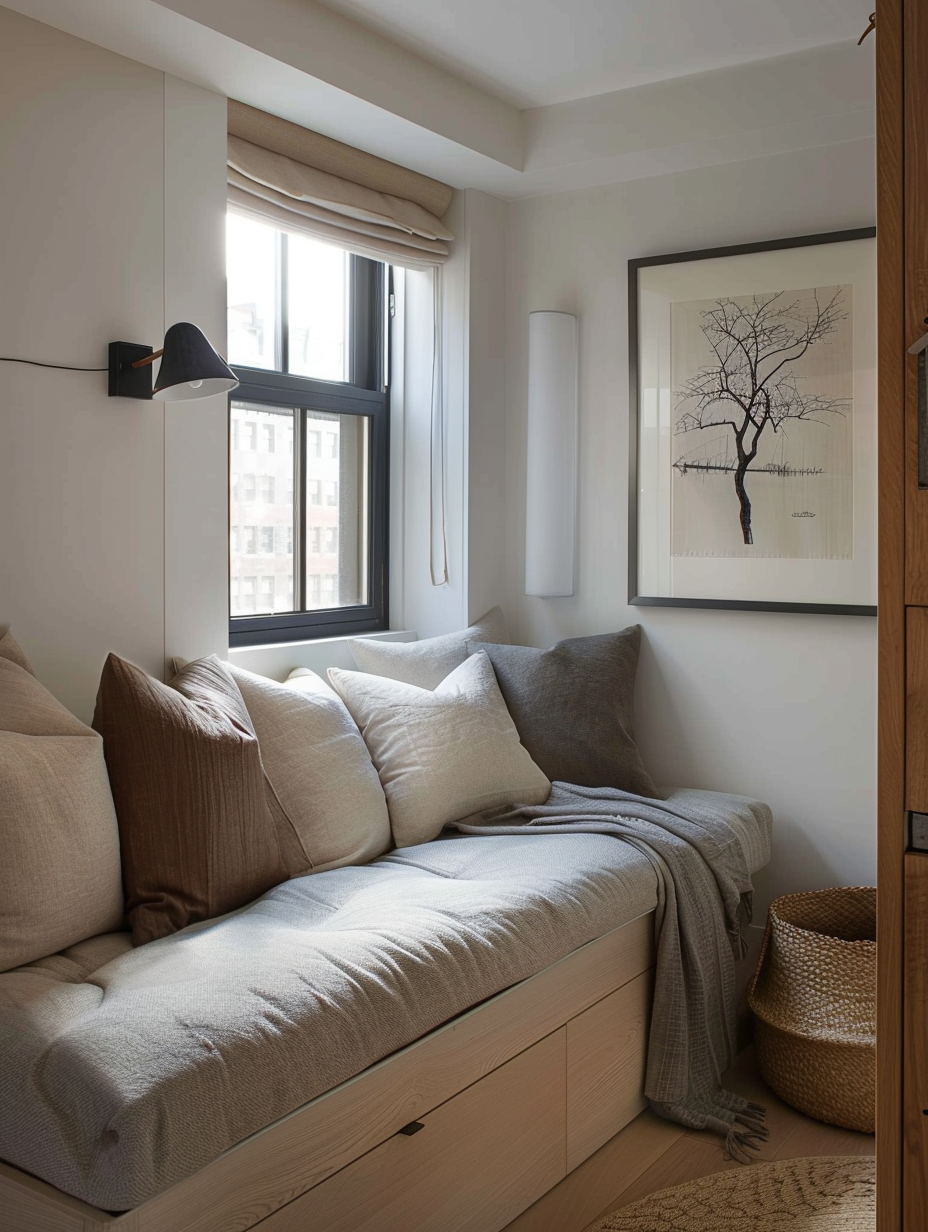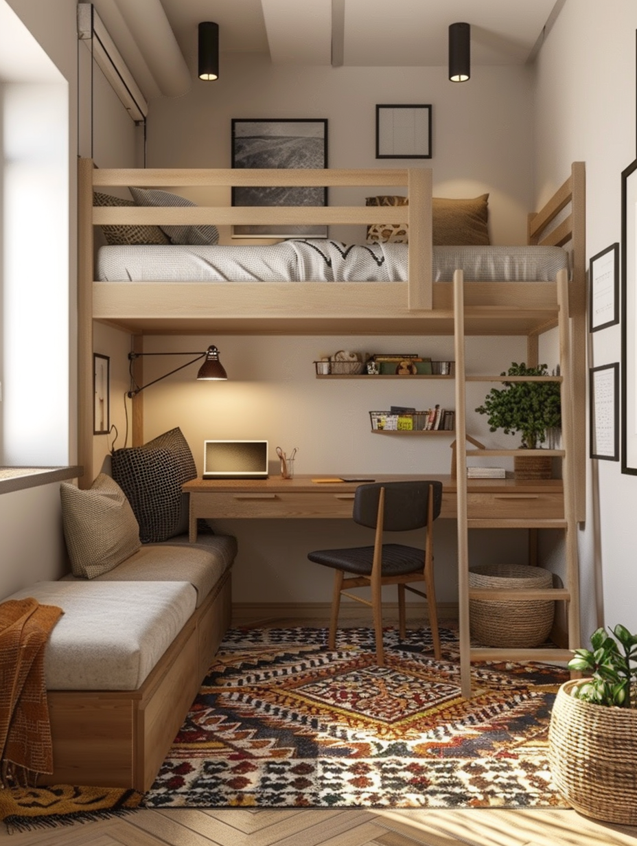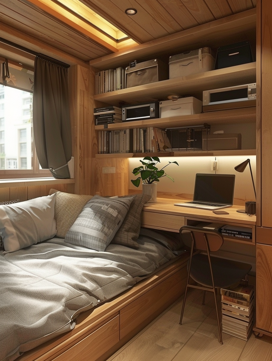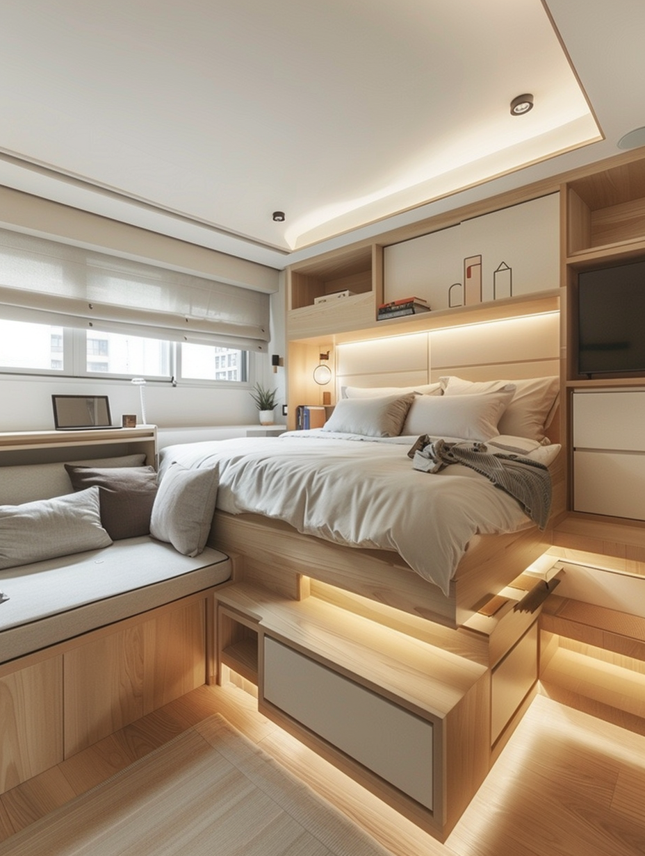 A small bedroom room with multifunction furniture is rule number one. You can opt for pieces that give several uses such as a bed with built-in storage drawers or a desk that doubles as a vanity. A sofa-bed is a clever idea as it gives two functions that are seating and sleeping space. Such practical and multifunctional units are very space-efficient while they keep a neat and organized appearance in a house.