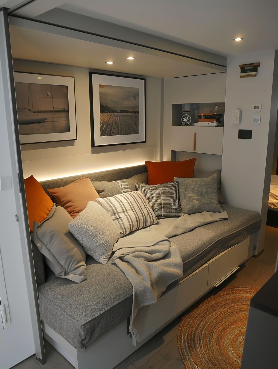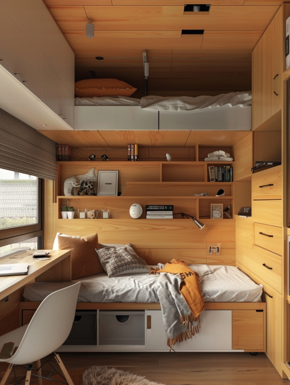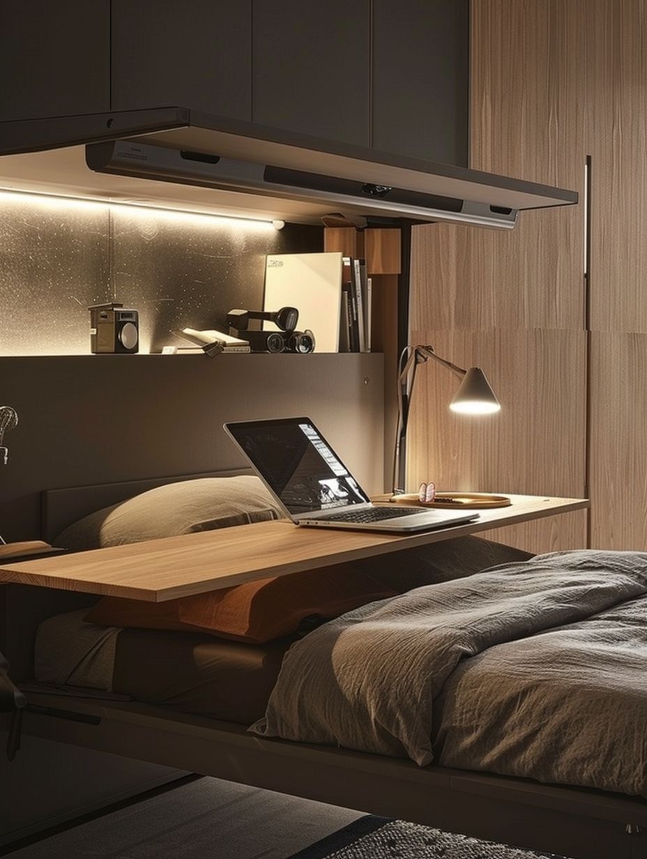 A Murphy bed is an extremely useful space-saving design for small bedrooms. When folded, it saves a spring-like zone which develops a free valuable floor position. Nowadays, you can choose a Murphy bed that provides you with extra features like built-in desks or shelves, and thus transformed it into a multifunctional piece of furniture that is perfect for small spaces.