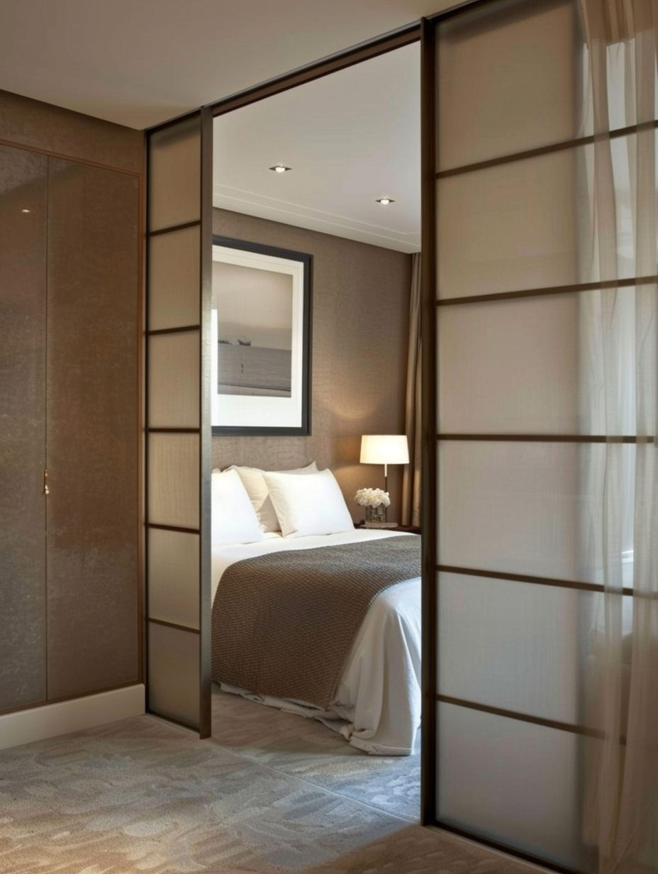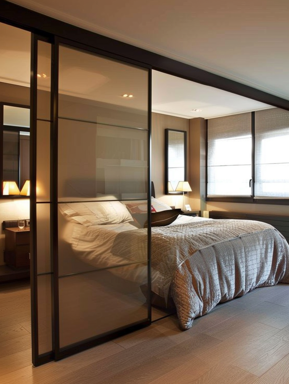 Tuesday proving to be the most practical solution for small bedrooms, as no space else will be required for opening slides. Whether it is the case of wardrobes, bathrooms, or room dividers you may apply them. Choosing mirrors with glass or frosted glass ones for doors will make the environment more attractive and broader visually as well.