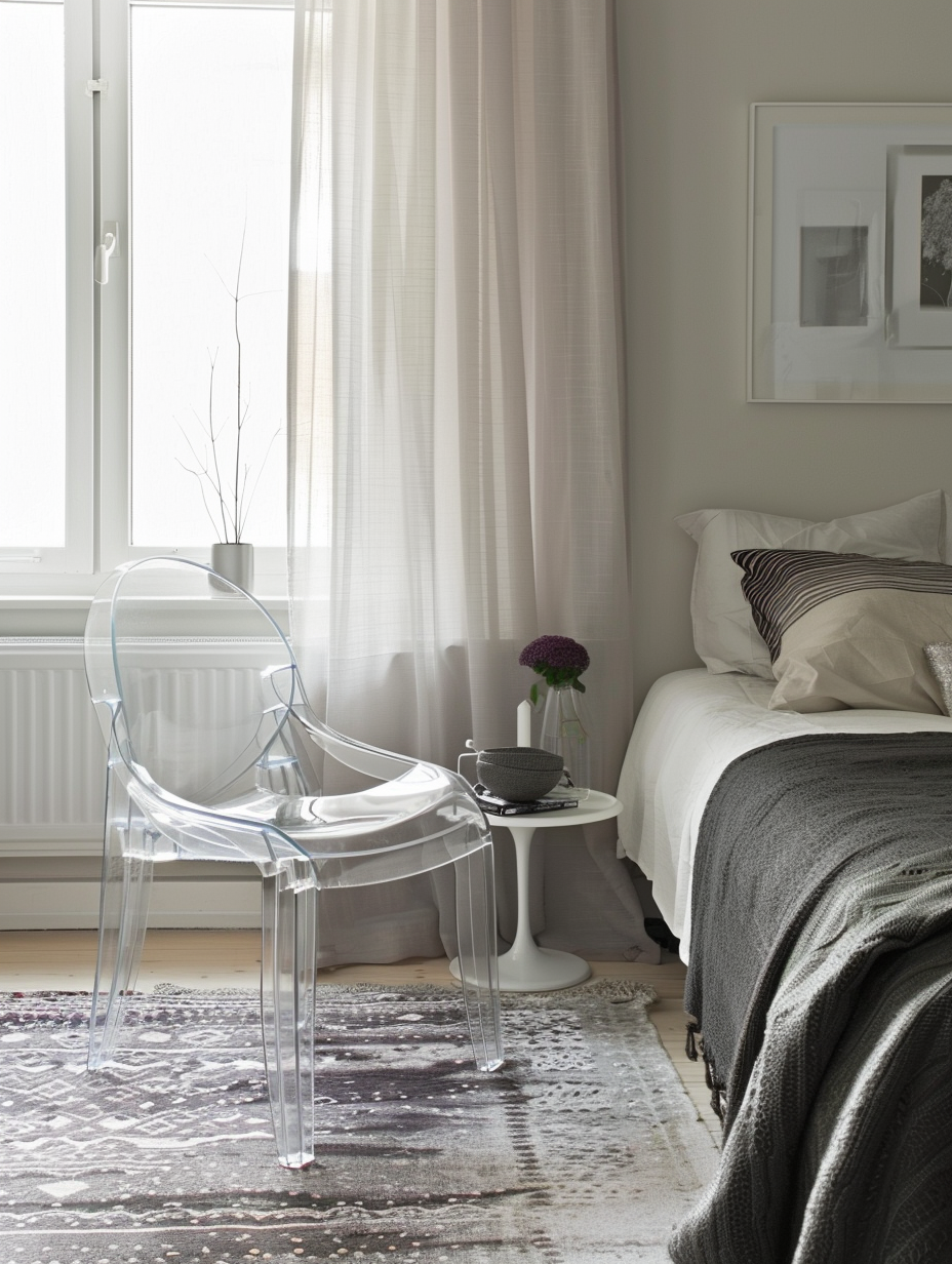 Transparent furniture, such as acrylic chairs or glass tables, will have to play a role in the desired visual clutter reduction of small spaces. They almost completely mix with the interior design, thus, making the environment spacious and more comfortable. Use transparent components scarcely to have the right effect of balanced and open environment.