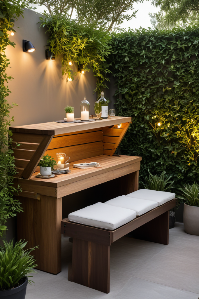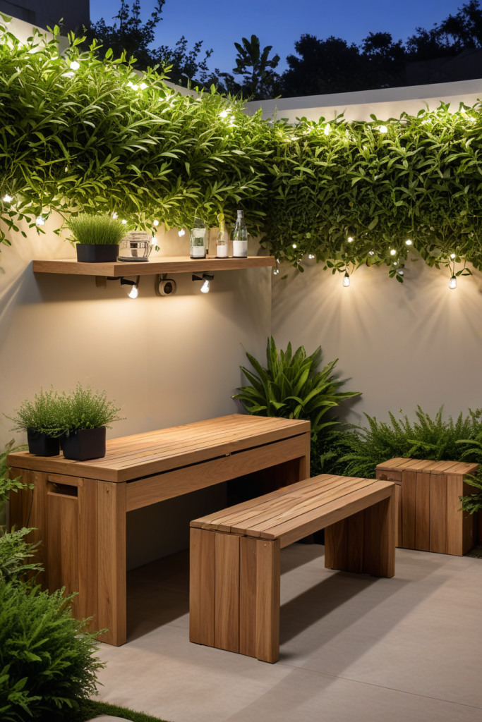 Invest in multi-functional outdoor furniture that serves more than one purpose. Consider benches with built-in storage, tables that fold into walls, or stackable stools. Choose weather-resistant materials like teak or aluminum to ensure durability.