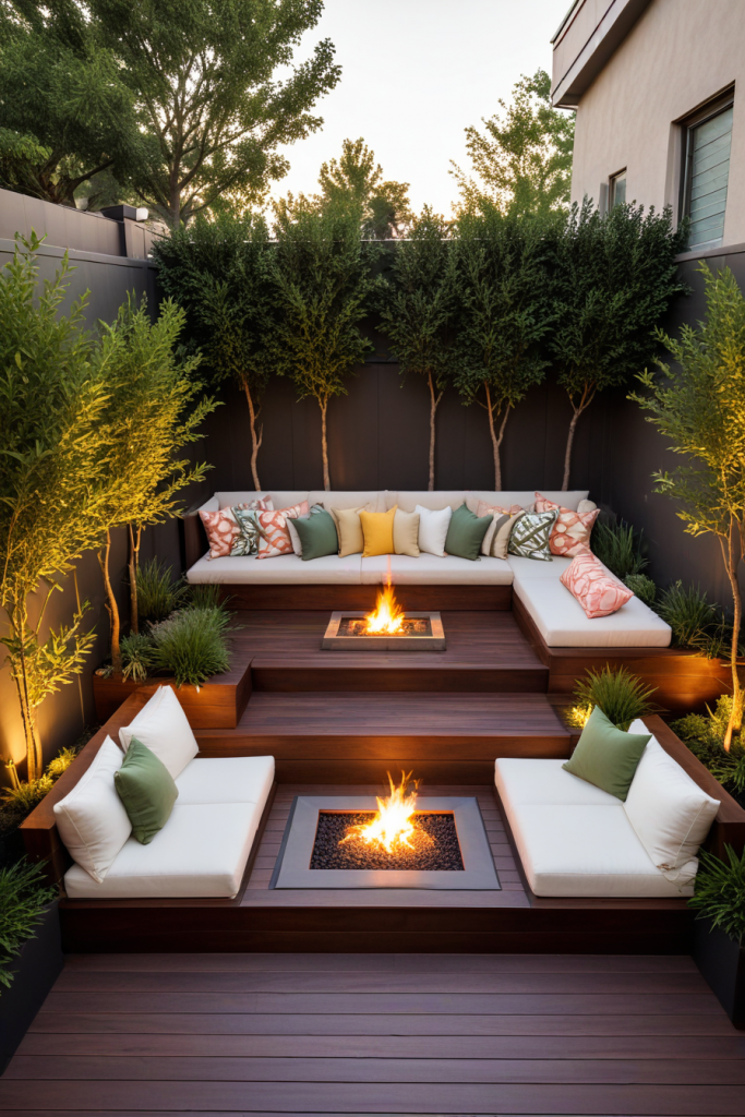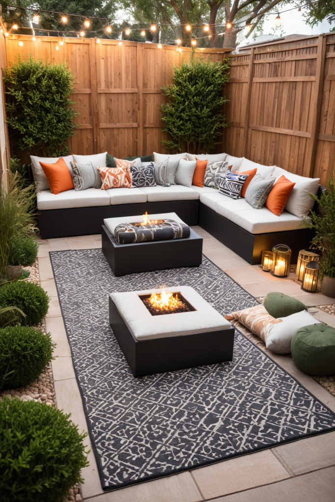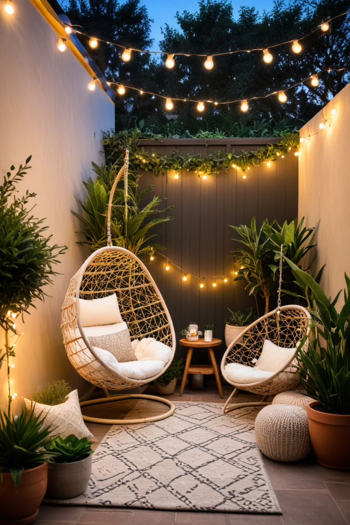 Comfort is key in a small backyard. Opt for corner benches with plush cushions to save space while providing ample seating. Hammocks and hanging egg chairs add charm without occupying much room. Layer with throws and pillows for a warm, inviting ambiance.