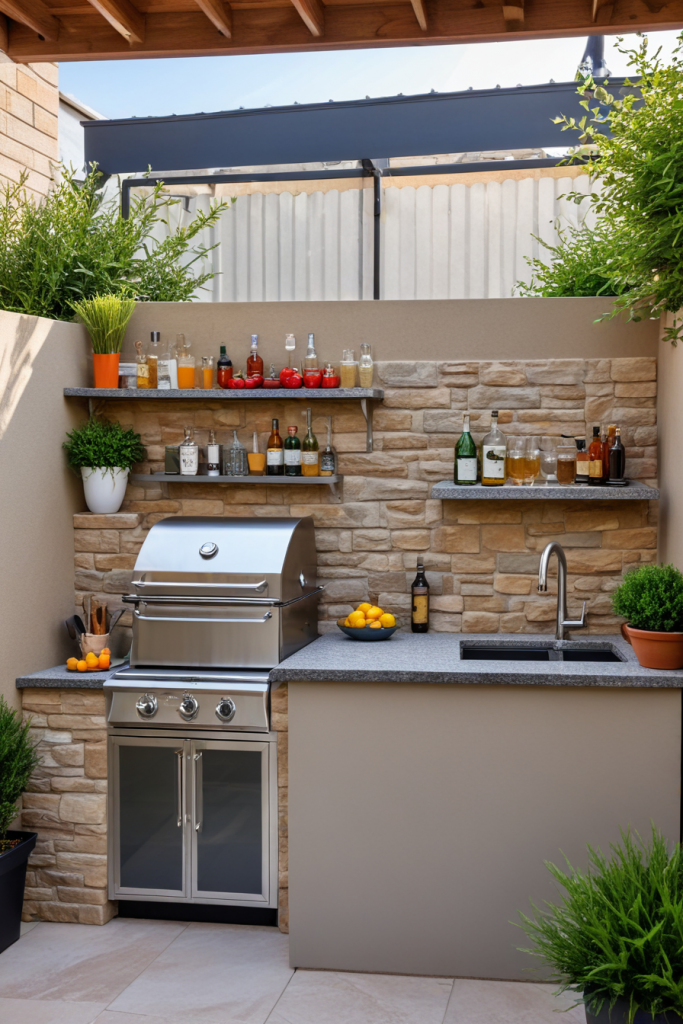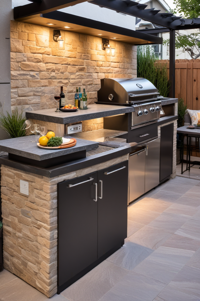 A well-designed small outdoor kitchen can maximize space and functionality. Use a built-in grill, compact counter space, and foldable bar tables to create a seamless cooking area. Opt for vertical storage solutions to keep utensils and accessories organized. Stainless steel or stone countertops ensure durability in outdoor conditions.