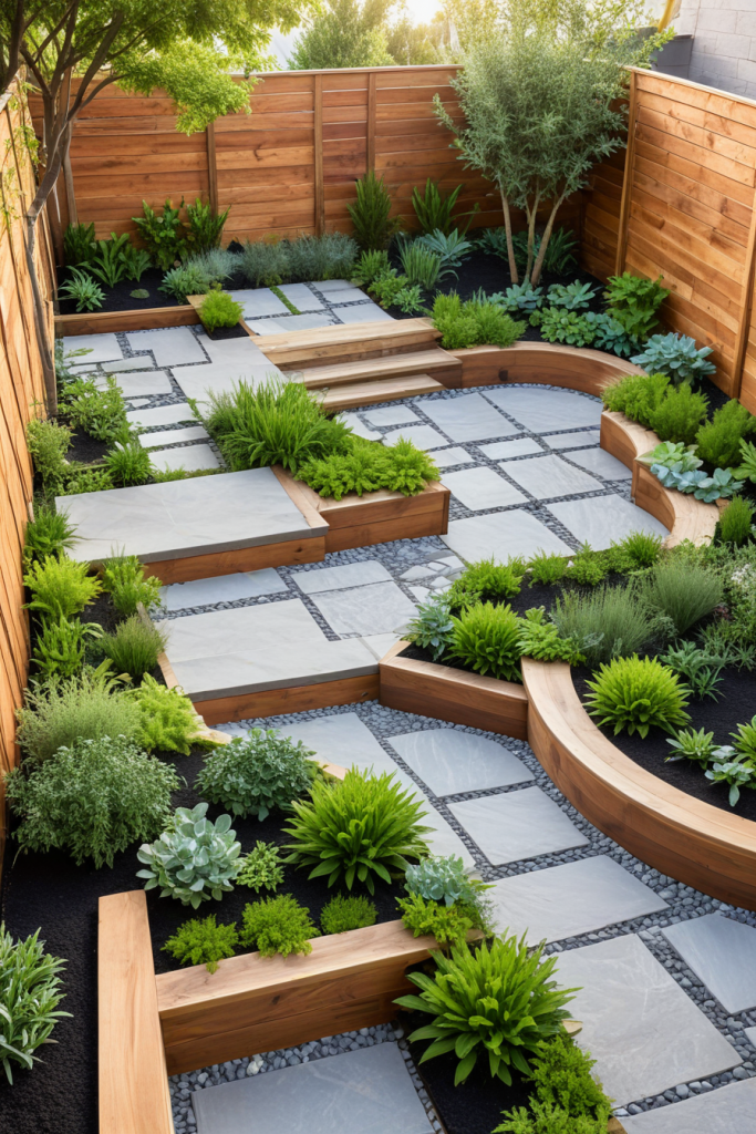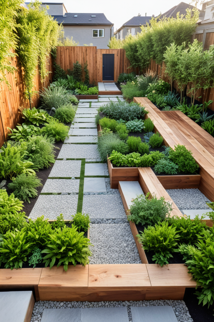 Raised garden beds are a practical and visually appealing way to grow plants in a tiny backyard. Opt for elevated wooden planters, corrugated metal beds, or tiered structures to maximize planting space. Use compact pathways or stepping stones to navigate between beds efficiently.