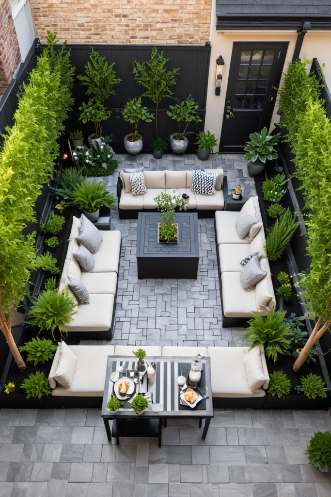 A functional small backyard layout prioritizes space efficiency. Consider dividing the space into zones for lounging, dining, and gardening. Use geometric patterns in flooring or planters to define each area visually. Incorporate foldable or retractable elements to switch up the space when needed, ensuring versatility.