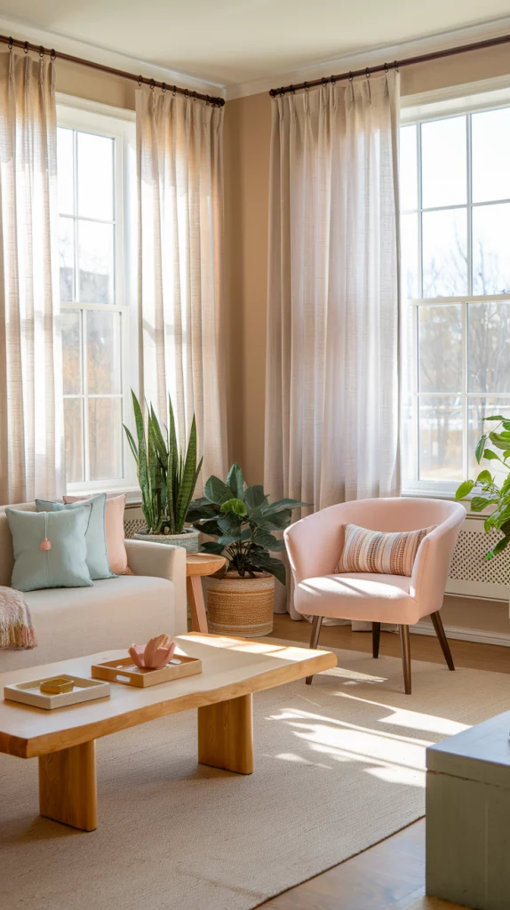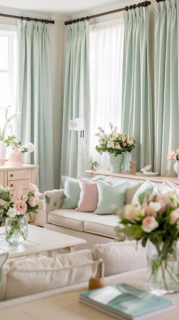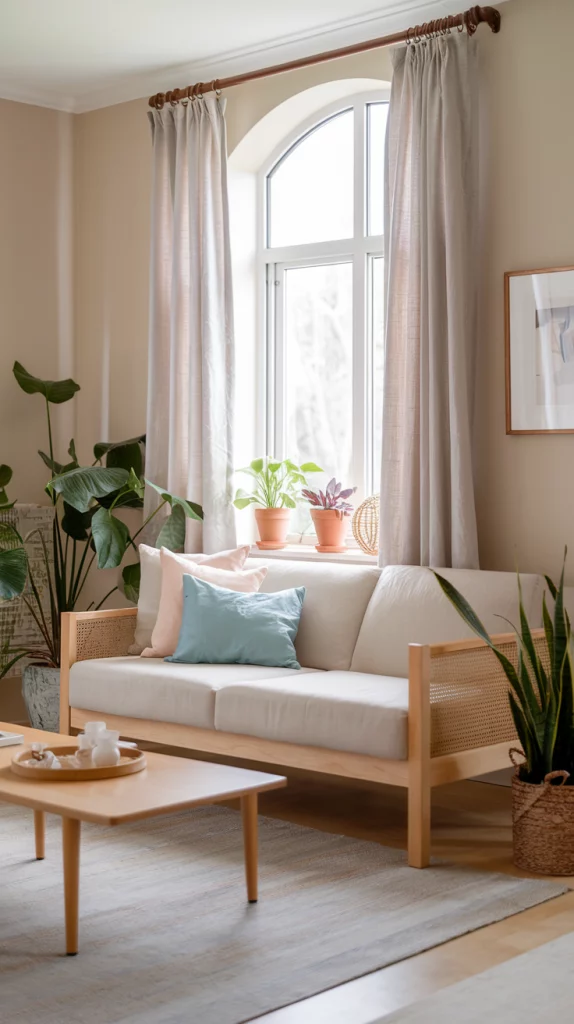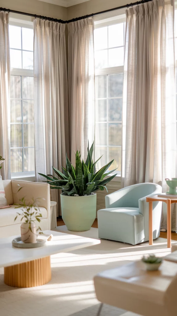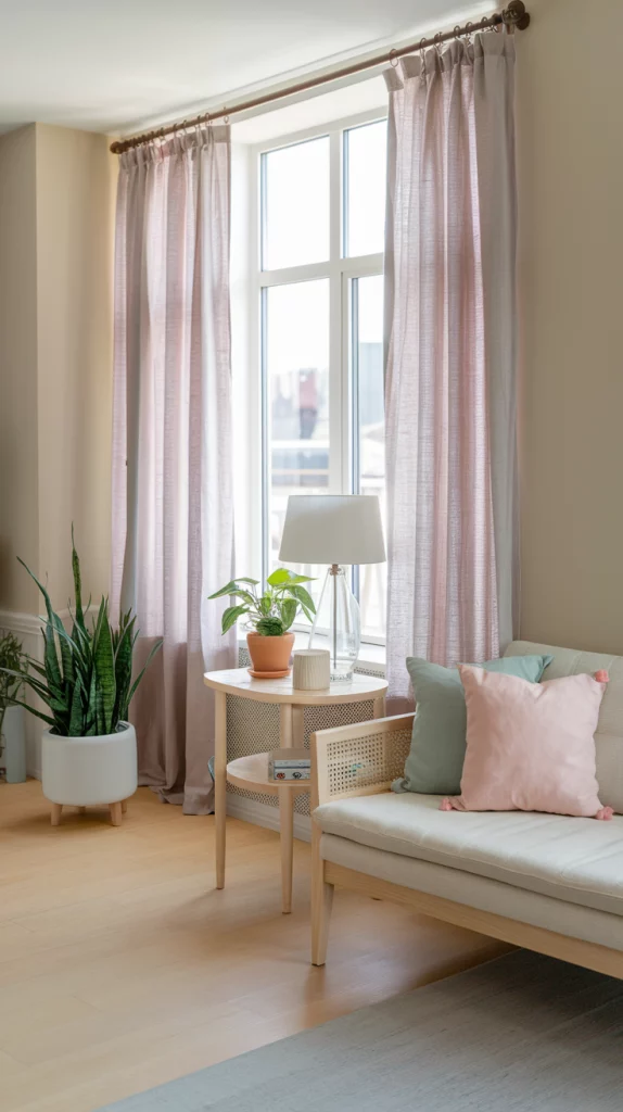 Let the sunshine in with bright and airy window treatments that enhance natural light. Sheer curtains in light fabrics like linen or cotton are a go-to for Spring 2025, offering a breezy and ethereal feel. Pair them with minimal hardware to maintain a sleek, modern look. For privacy, layer sheer curtains with blackout panels in neutral or pastel shades.